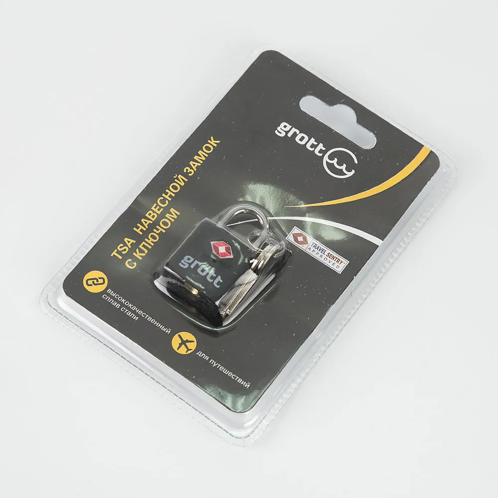 Навесной компактный замочек от фирмы Grott защищает багаж от краж и взломоустойчив. Пригодится каждому путешественнику. Замок выполнен из высококачественной стали, а сверху дополнен корпусом чёрного цвета из АВС-пластика и декорирован логотипом бренда, застёжка классической полукруглой формы. В комплекте два ключа.