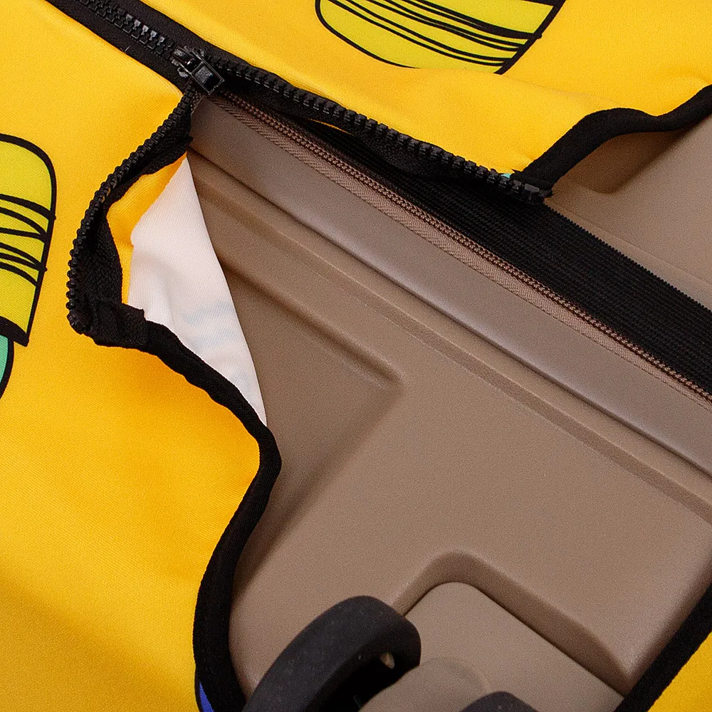 Чехол для чемодана от торговой марки Grott выполнен из прочного эластичного материала. Модель размером L подходит для чемоданов с диагональю от 26 до 28 дюймов. Застегивается снизу на молнию, фиксируется ремешком с застежкой фастекс; имеет отверстия для переносных ручек и выдвижной ручки чемодана. Дорожный аксессуар защитит багаж от загрязнений и повреждений, а оригинальный яркий принт с кактусами поможет опознать чемодан на багажной ленте.