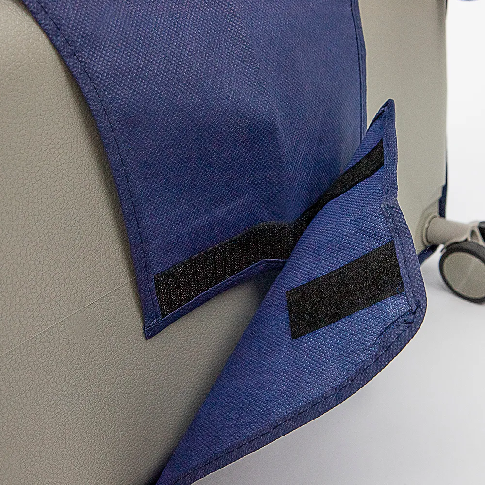 Чехол для чемодана от торговой марки Grott из водонепроницаемого спанбонда. Легкая модель для чемоданов с диагональю от 22 до 26 дюймов; снизу застегивается на липучку, имеет прорези для ручек багажа по бокам и сверху. Дорожный аксессуар поможет предохранить багаж от загрязнений, вскрытий и мелких повреждений. Размер: M.