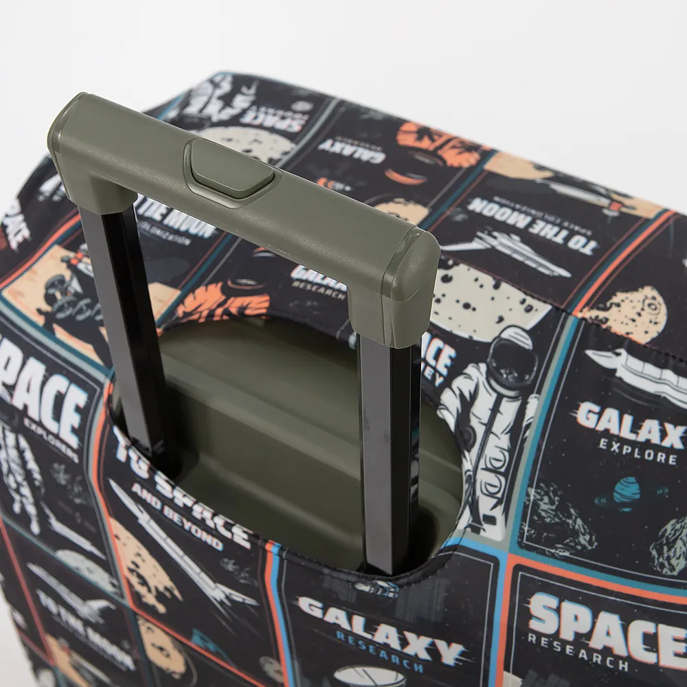 Чехол для чемодана от торговой марки Grott выполнен из прочного эластичного материала. Модель размером L подходит для чемоданов с диагональю от 26 до 28 дюймов. Застегивается снизу на молнию, имеет отверстия для переносных ручек и выдвижной ручки чемодана. Дорожный аксессуар защитит багаж от загрязнений и повреждений, а оригинальный принт поможет опознать чемодан на багажной ленте.