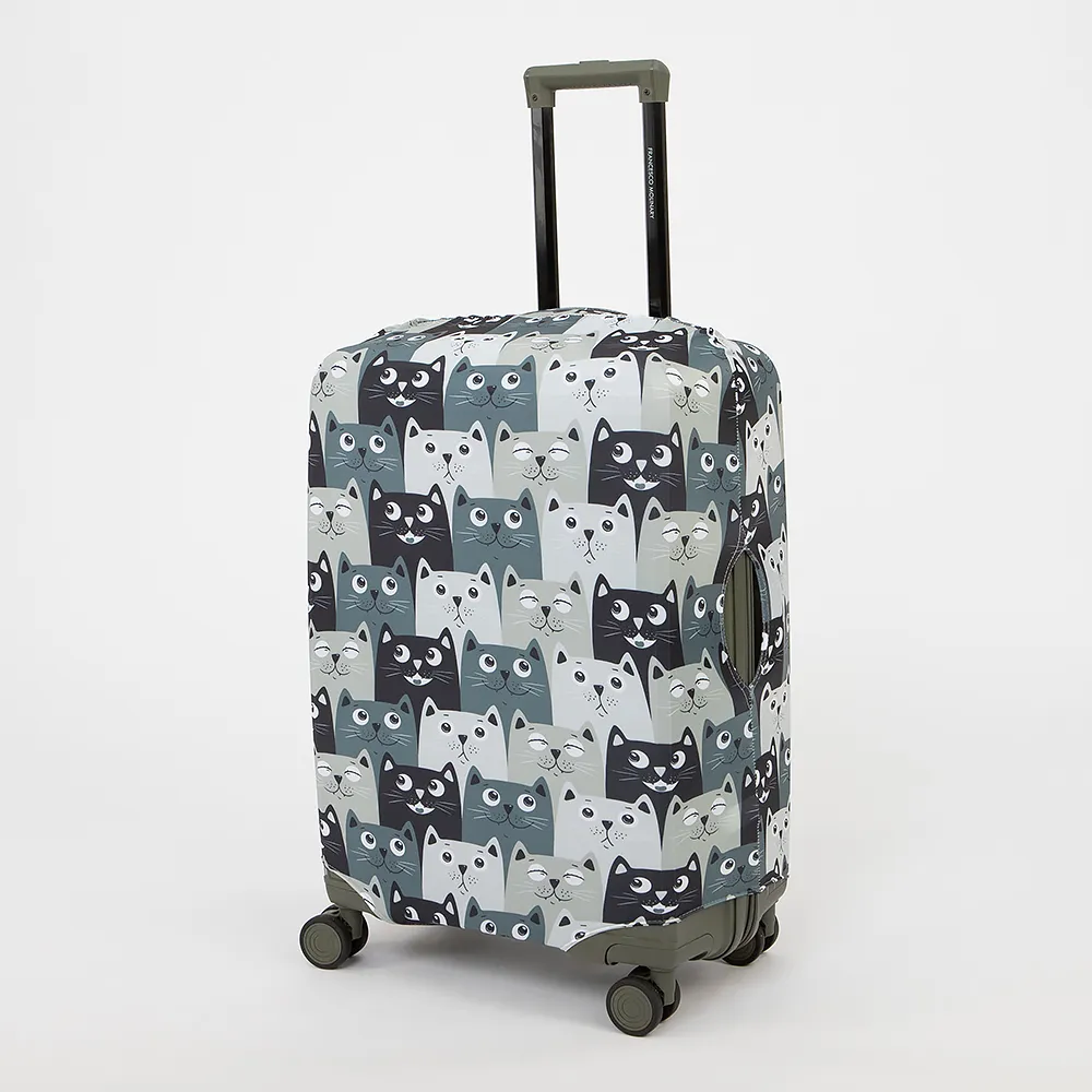 Чехол для чемодана от торговой марки Grott выполнен из прочного эластичного материала. Модель размером L подходит для чемоданов с диагональю от 26 до 28 дюймов. Застегивается снизу на молнию, имеет отверстия для переносных ручек и выдвижной ручки чемодана. Дорожный аксессуар защитит багаж от загрязнений и повреждений, а оригинальный принт поможет опознать чемодан на багажной ленте.