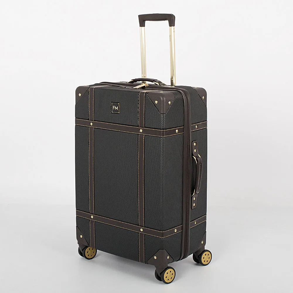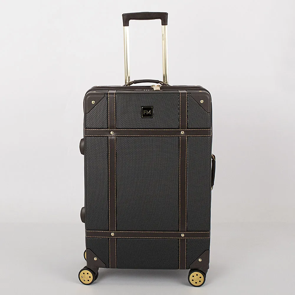 Чемодан-спиннер от торговой марки Francesco Molinary выполнен из ударопрочного ABS-пластика синего цвета. Модель на четырех сдвоенных пластиковых колесах, оснащена выдвижной металлической ручкой с кнопкой, ручками из искусственной кожи сверху и сбоку, пластиковыми ножками сбоку, утопленным в корпус кодовым замком TSA. Двойная антивандальная молния делит чемодан на две равные части, в одной из которых – клапан на молнии с внешним карманом-сеткой на молнии, в другой – перекрестные ремни для фиксации багажа. Углы чемодана укреплены пластиковыми накладками. Модель декорирована фурнитурой золотистого цвета, вставками из искусственной кожи и клепками, придающими эффект брутальности.