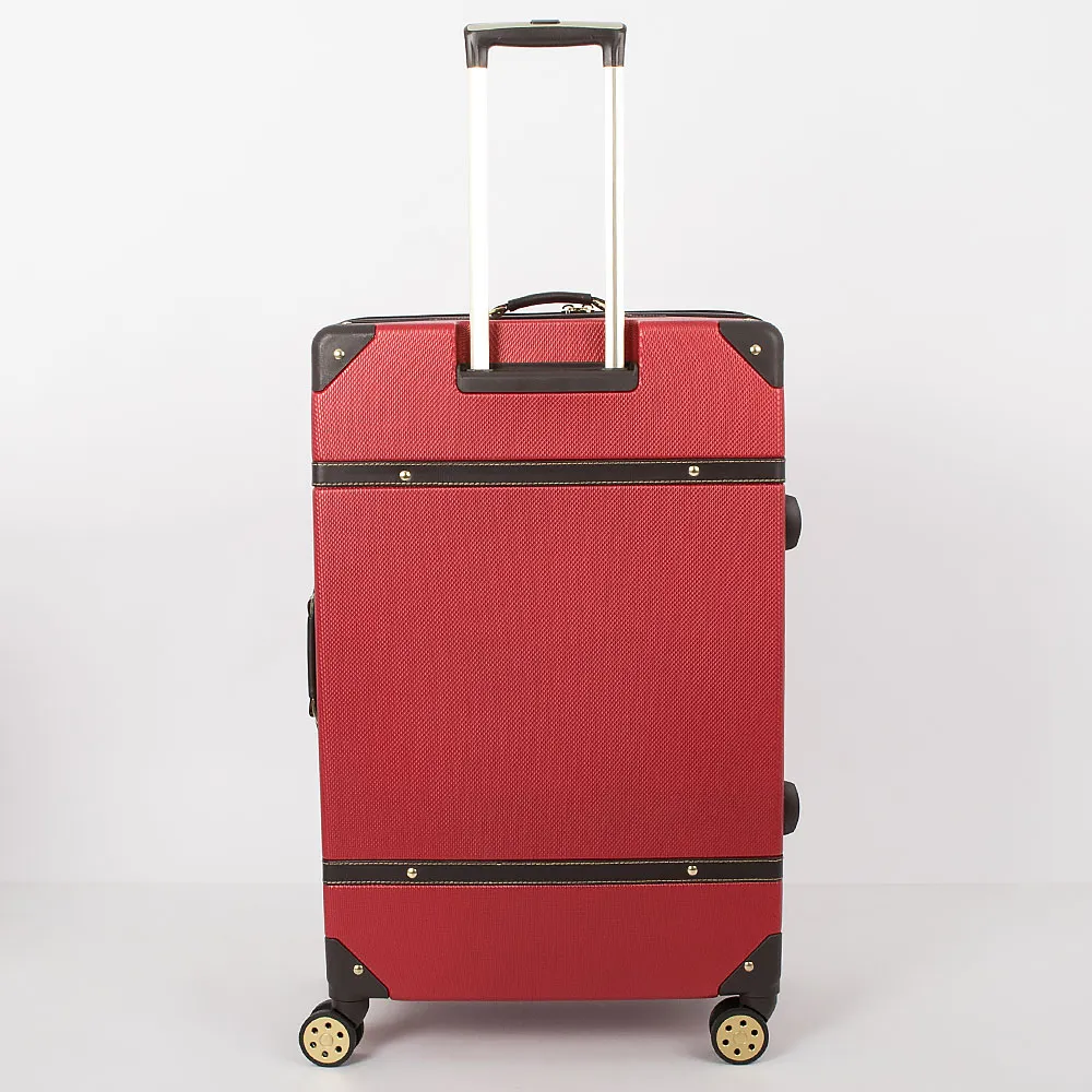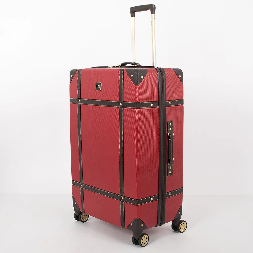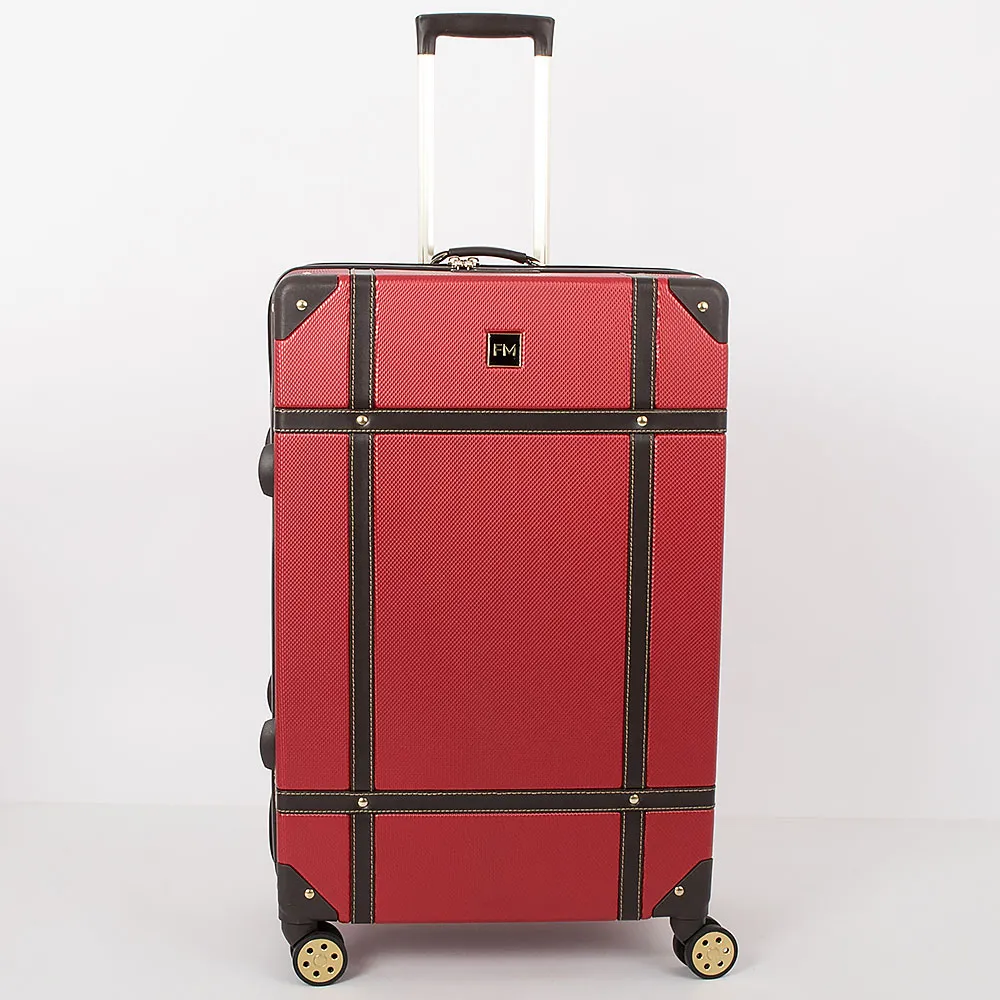 Чемодан-спиннер от торговой марки Francesco Molinary выполнен из ударопрочного ABS-пластика синего цвета. Модель на четырех сдвоенных пластиковых колесах, оснащена выдвижной металлической ручкой с кнопкой, ручками из искусственной кожи сверху и сбоку, пластиковыми ножками сбоку, утопленным в корпус кодовым замком TSA. Двойная антивандальная молния делит чемодан на две равные части, в одной из которых – клапан на молнии с внешним карманом-сеткой на молнии, в другой – перекрестные ремни для фиксации багажа. Углы чемодана укреплены пластиковыми накладками. Модель декорирована фурнитурой золотистого цвета, вставками из искусственной кожи и клепками, придающими эффект брутальности.