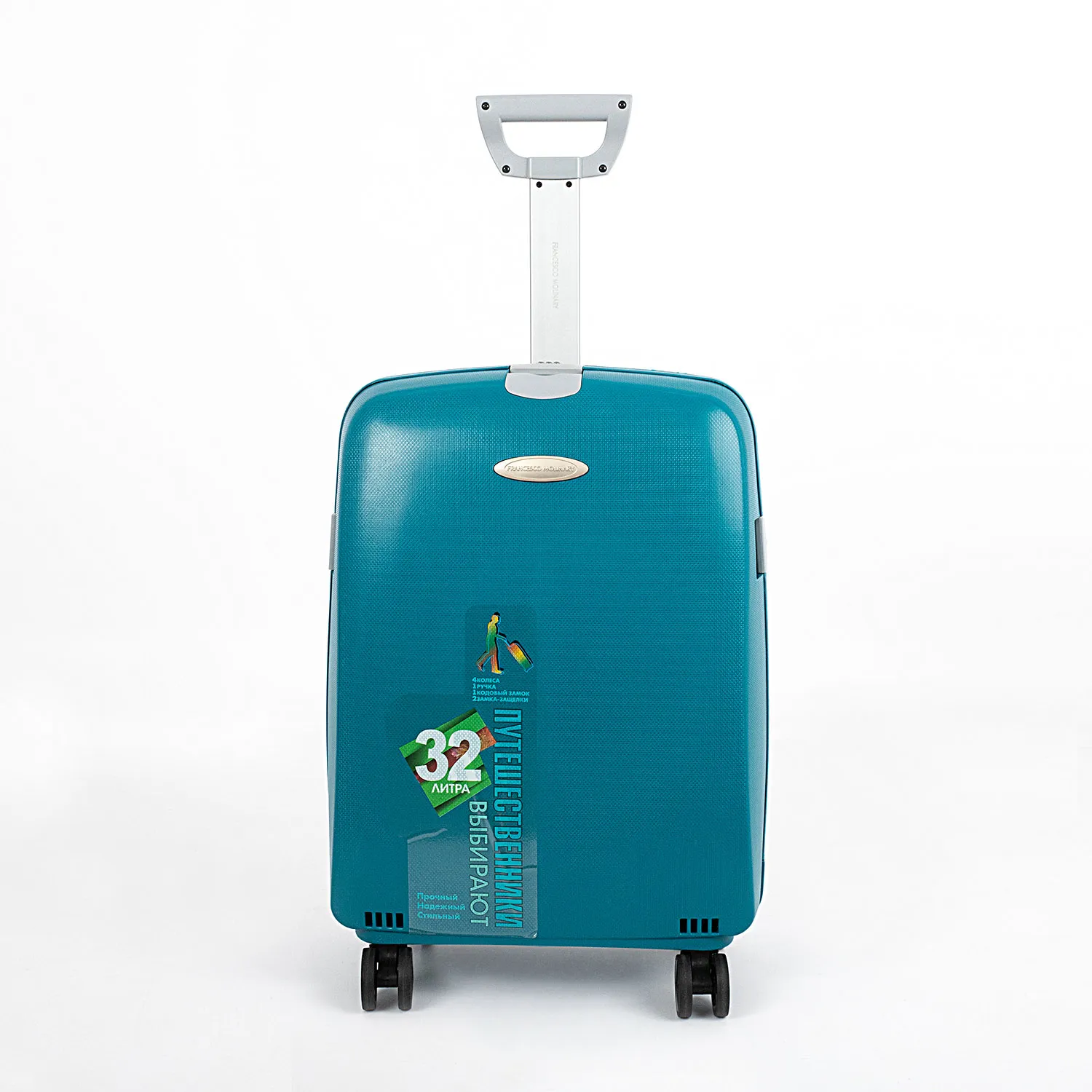 Чемодан-спиннер от торговой марки Francesco Molinary из ударопрочного термостойкого полипропилена красного цвета с антивандальной по верхностью. Модель на четырех сдвоенных пластиковых колесах, с выдвижной алюминиевой ручкой, ручками-переносками сверху и сбоку. Закрывается четырьмя защелками; две боковые защелки оснащены кодовым замком, верхняя и нижняя дополнительно закрываются на ключ. Внутри: фирменный подклад из полиэстера плотностью 210 Ден; в одной части – перекрестные ремни для фиксации багажа, в другой – клапан-разделитель на молнии с карманом-сеткой на молнии. Натяжение подкладки в основной части чемодана обеспечивает плотное прилегание. Подкладка закреплена скобами и дополнительно фиксируется липкой лентой, а также держателями ремней для багажа. Имеется адресная бирка. Чемоданы из полипропилена обладают отличными эксплуатационными свойствами. Как правило, у изделий из этого материала отсутствует подкладка. Превосходное внутреннее наполнение чемодана, включая фирменную подкладку, выгодно отличает модель бренда Francesco Molinary.
