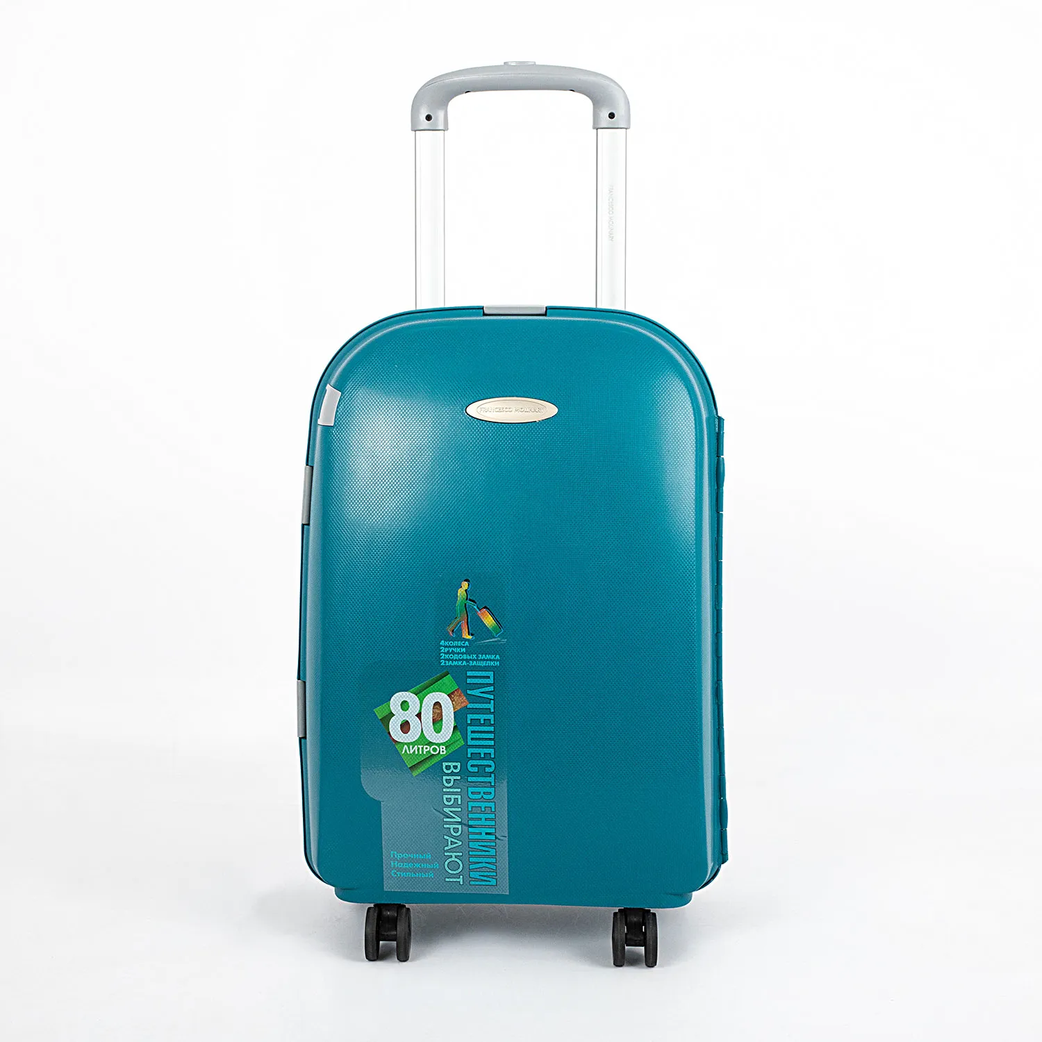 Чемодан-спиннер от торговой марки Francesco Molinary из ударопрочного термостойкого полипропилена красного цвета с антивандальной по верхностью. Модель на четырех сдвоенных пластиковых колесах, с выдвижной алюминиевой ручкой, ручками-переносками сверху и сбоку. Закрывается четырьмя защелками; две боковые защелки оснащены кодовым замком, верхняя и нижняя дополнительно закрываются на ключ. Внутри: фирменный подклад из полиэстера плотностью 210 Ден; в одной части – перекрестные ремни для фиксации багажа, в другой – клапан-разделитель на молнии с карманом-сеткой на молнии. Натяжение подкладки в основной части чемодана обеспечивает плотное прилегание. Подкладка закреплена скобами и дополнительно фиксируется липкой лентой, а также держателями ремней для багажа. Имеется адресная бирка. Чемоданы из полипропилена обладают отличными эксплуатационными свойствами. Как правило, у изделий из этого материала отсутствует подкладка. Превосходное внутреннее наполнение чемодана, включая фирменную подкладку, выгодно отличает модель бренда Francesco Molinary.