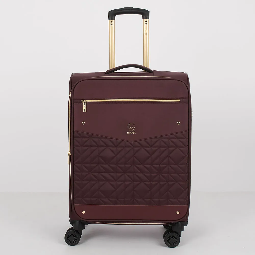 Чемодан-спиннер от торговой марки Grott из прочного текстильного материала зеленого цвета. Модель на четырех пластиковых колесах, с выдвижной ручкой с железными трубками, ручками-переносками сверху и сбоку. Закрывается молнией золотистого цвета; имеется замок TSA, утопленный в корпус. Внутри: фирменная подкладка плотностью 210 Ден; на крышке – два кармана на молнии, в том числе карман-сетка; в глубоком отделении – ремни для фиксации багажа. На лицевой стороне – карман на молнии; вставка, декорированная мягкой стежкой. Верхние углы креплены пластиковыми накладками для защиты от износа. Имеется раздвижка на молнии для увеличения объема.