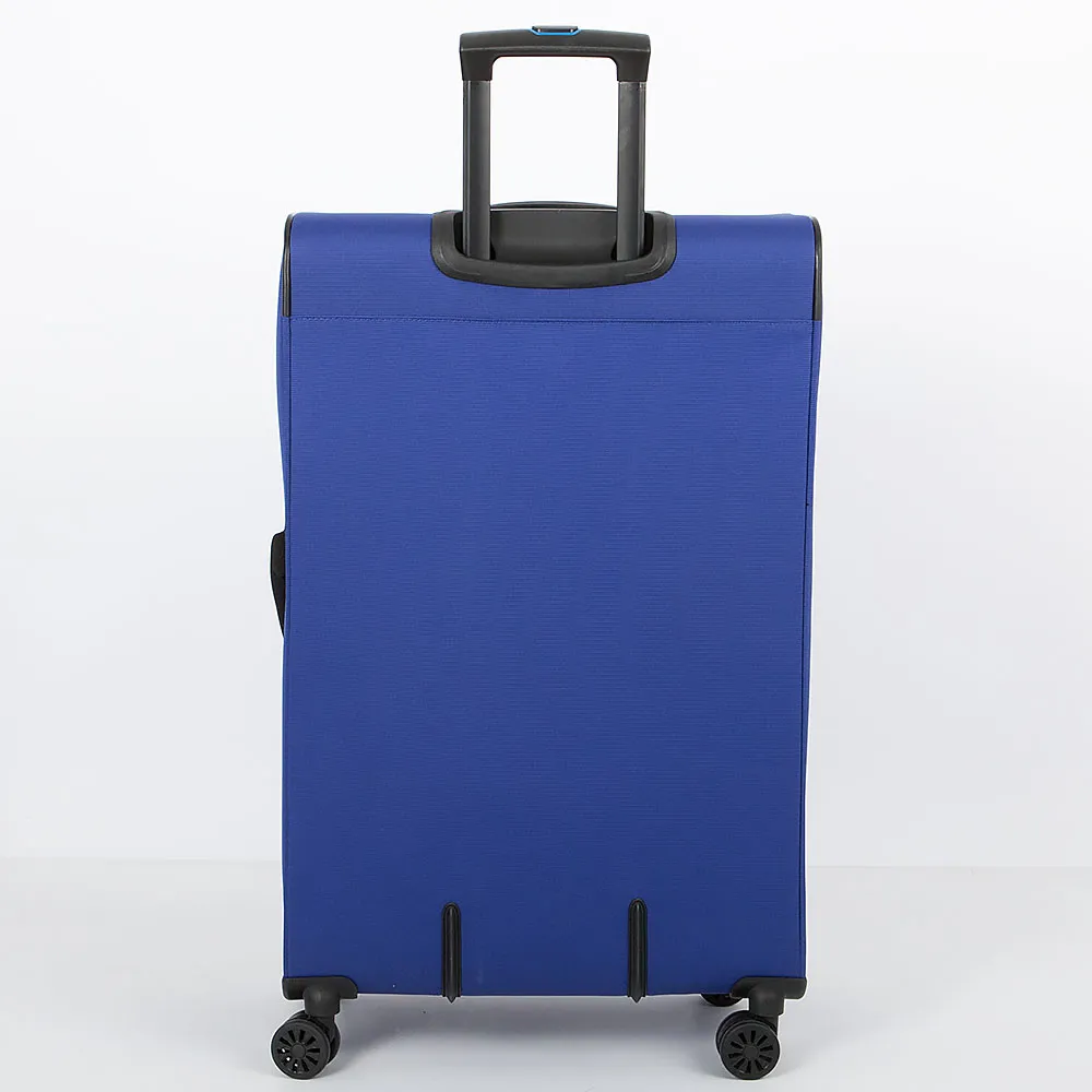 Чемодан-спиннер от торговой марки Francesco Molinary из практичного полиэстера плотностью 900 Ден с влагостойкой пропиткой в черном цвете. Модель на четырех сдвоенных колесах, с выдвижной ручкой с железными трубками, прорезиненной ручкой-переноской сверху и ручкой сбоку, держателем на дне. Закрывается двойной антивандальной молнией; имеется кодовый замок TSA и раздвижка на молнии для увеличения объема. Верхние углы укреплены прорезиненными накладками. Внутри: уплотненная фирменная подкладка; на крышке – карман-сетка на молнии, в глубоком отделении – фиксирующие ремни для багажа. На лицевой стороне – два кармана на молнии.