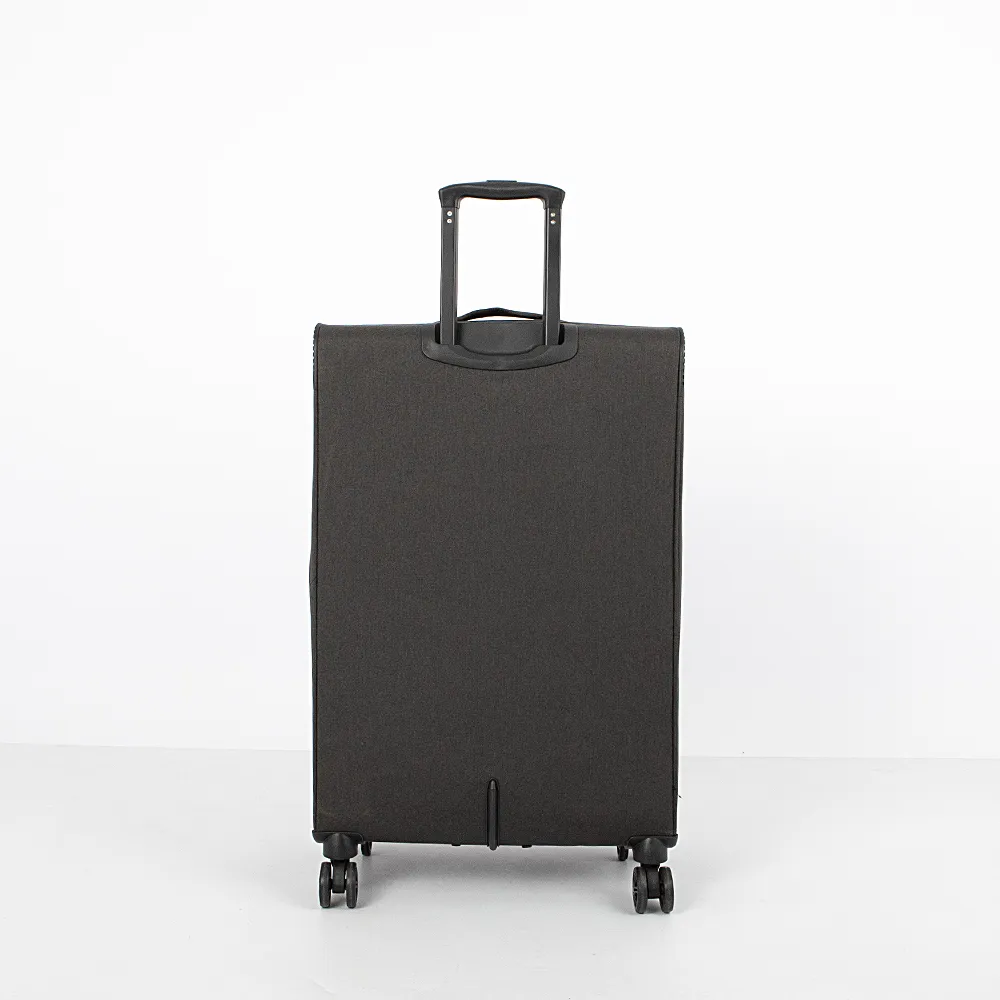 Чемодан-спиннер от торговой марки Francesco Molinary из прочного практичного текстильного материала черного цвета. Модель на четырех сдвоенных колесах, с выдвижной ручкой с кнопкой, ручками-переносками сверху и сбоку. Закрывается крупной молнией, имеется кодовый замок TSA, утопленный в корпус. Внутри: фирменная подкладка, в глубоком отделении - фиксирующие ремни для багажа, на крышке - два кармана на молнии, в том числе карман-сетка. Верхние углы защищены прорезиненными накладками. Имеется раздвижка на молнии для увеличения объема. На лицевой стороне - два кармана на молнии.