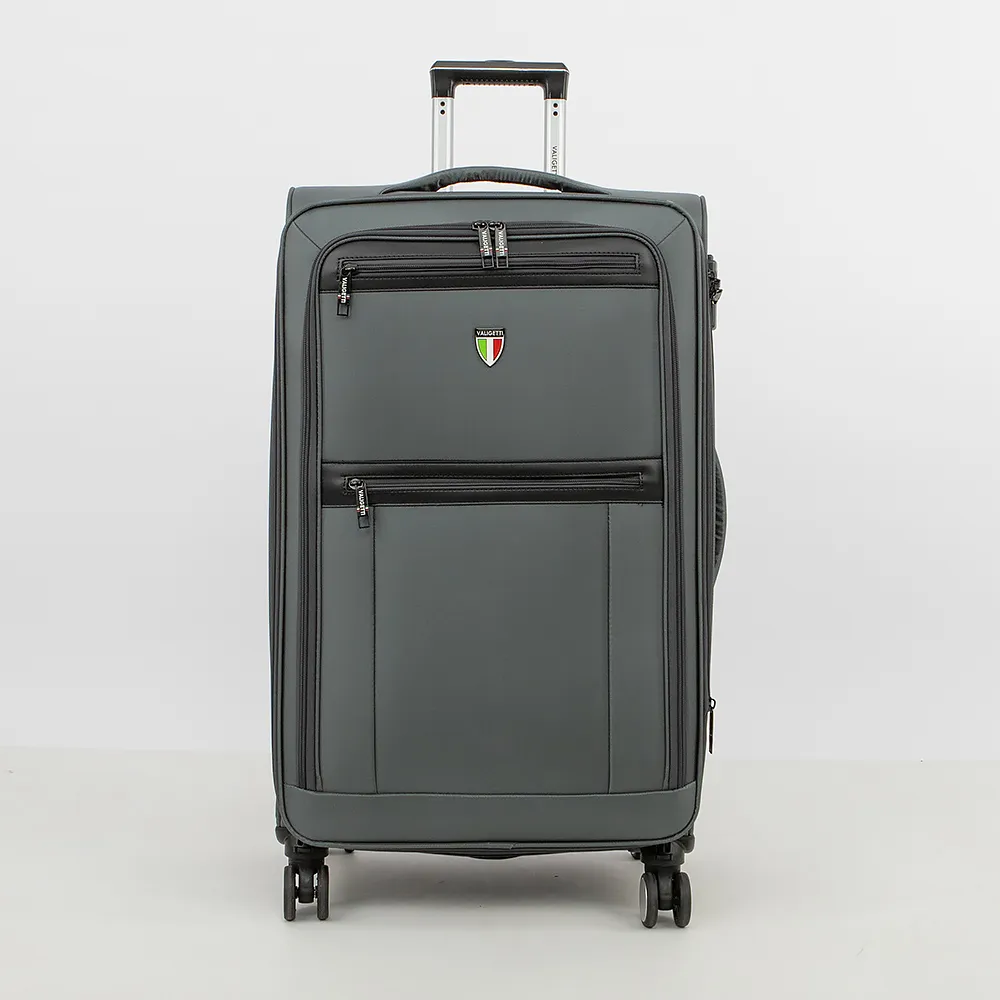Чемодан-спиннер от торговой марки Valigetti из прочного текстильного материала синего цвета. Декорирован деталями в цвете итальянского флага. Модель на четырех сдвоенных прорезиненных съемных колесах, с выдвижной ручкой, двумя ручками, укрепленными хольнитенами, ручкой-держателем на дне, ножками-опорами сбоку. Верхние углы защищены прорезиненными накладками, нижняя часть – пластиковыми накладками. Закрывается молнией; имеется кодовый замок с выдвижным адресным окном. Внутри: фирменная подкладка с поролоновой вставкой. В глубоком отделении – фиксирующие ремни для багажа; на крышке – два кармана на молнии. На лицевой стороне – вместительный карман-отделение, два кармана на молнии. На спинке – выдвижное адресное окошко. Имеется раздвижка на молнии для увеличения объема.