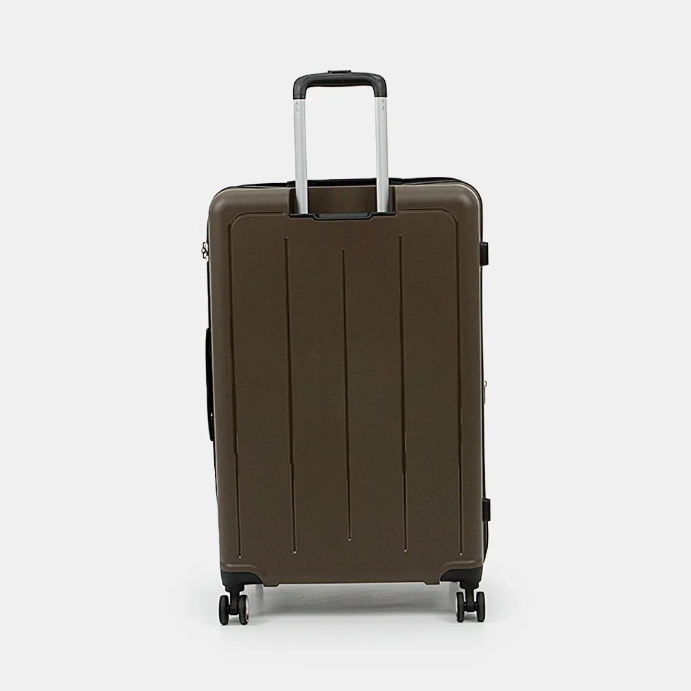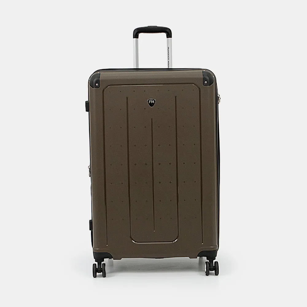 Маневренный чемодан-спиннер от торговой марки Francesco Molinary выполнен из ударопрочного полипропилена в желтом цвете. Модель на четырех сдвоенных пластиковых колесах, с выдвижной телескопической ручкой, прорезиненной ручкой-переноской сверху и сбоку; пластиковыми ножками сбоку. Отделение на молнии с двумя встречными бегунками с отверстиями для навесного замка, не входящего в комплект; имеется кодовый замок, утопленный в корпус. Закрывается на двойную антивандальную молнию «антивор». Внутри: фирменная подкладка, в одной части – клапан-разделитель и карман-сетка на молнии, в другой – перекрестные фиксирующие ремни для багажа; посередине имеется карман на молнии. В верхней части чемодан укреплен пластиковыми угловыми накладками. Имеется раздвижка на молнии для увеличения объема.