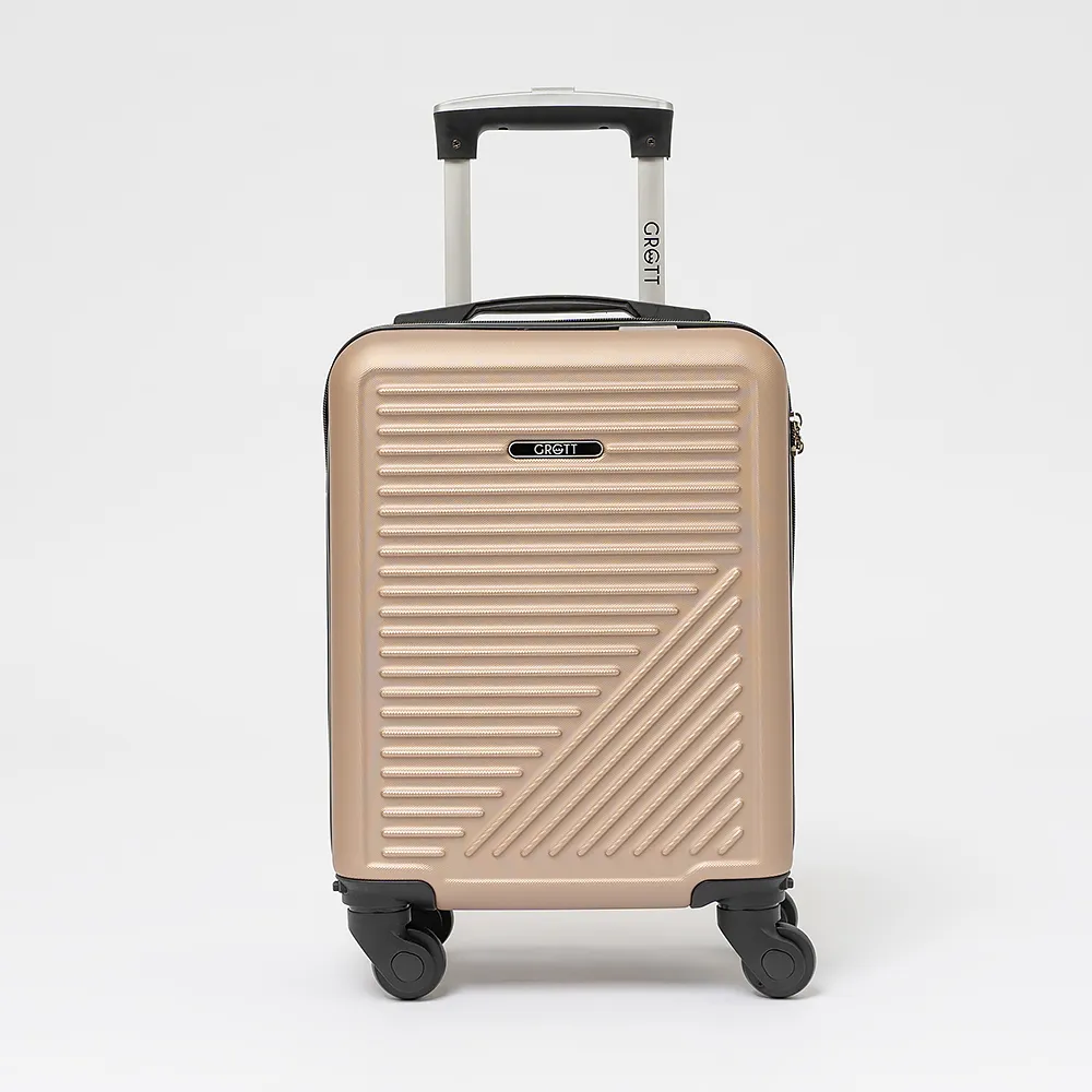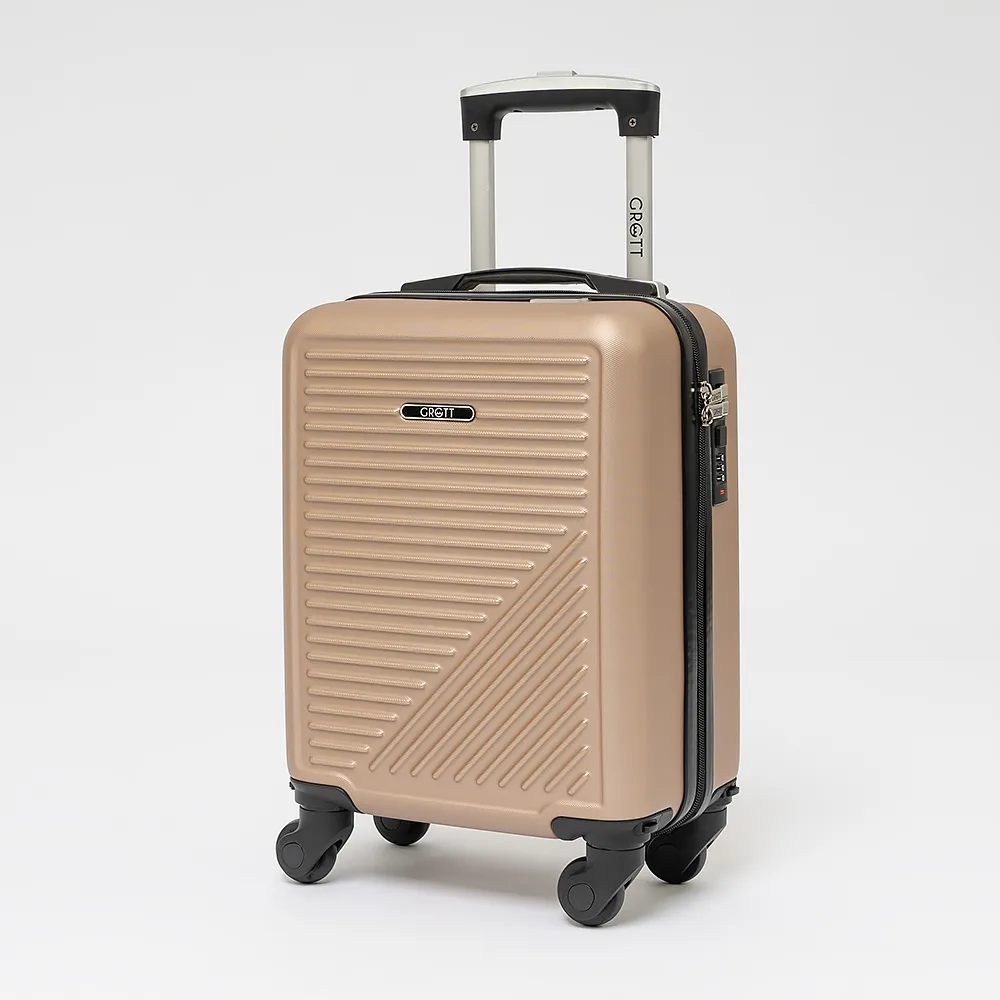 Чемодан-спиннер от торговой марки Grott из ударопрочного ABS-пластика с рельефной поверхностью синего цвета. Модель на четырех съемных пластиковых колесах, с выдвижной ручкой, ручкой-переноской сверху. Закрывается молнией, имеется кодовый замок, утопленный в корпус. Внутри: фирменная подкладка, в одной части - клапан-разделитель на молнии, карман-сетка на молнии, в другой - перекрестные ремни для фиксации багажа. Чемодан подходит под размер ручной клади большинства авиакомпаний.
