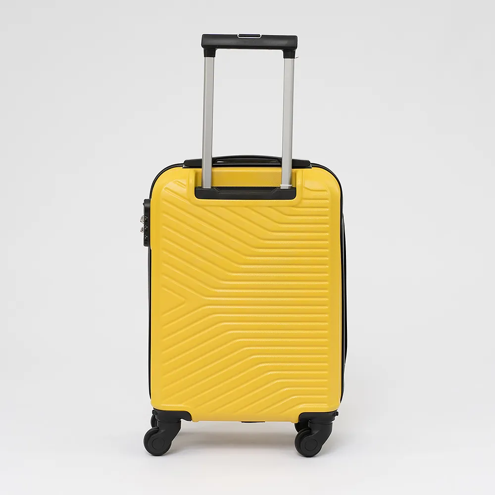 Чемодан-спиннер от торговой марки Valigetti из ударопрочного ABS-пластика с рельефной поверхностью желтого цвета. Модель на четырех съемных пластиковых колесах, с выдвижной ручкой, ручками-переносками сверху и сбоку, ножками-опорами сбоку. Имеется кодовый замок. Отделение на молнии с двумя встречными бегунками с ушками для навесного замка, не входящего в комплект. Внутри: фирменная подкладка. В одном отделении - разделитель на молнии и карман-сетка на молнии, в другом - перекрестные ремни для фиксации багажа.