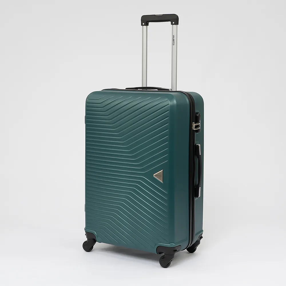 Чемодан-спиннер от торговой марки Valigetti из ударопрочного ABS-пластика с рельефной поверхностью желтого цвета. Модель на четырех съемных пластиковых колесах, с выдвижной ручкой, ручками-переносками сверху и сбоку, ножками-опорами сбоку. Имеется кодовый замок. Отделение на молнии с двумя встречными бегунками с ушками для навесного замка, не входящего в комплект. Внутри: фирменная подкладка. В одном отделении - разделитель на молнии и карман-сетка на молнии, в другом - перекрестные ремни для фиксации багажа.