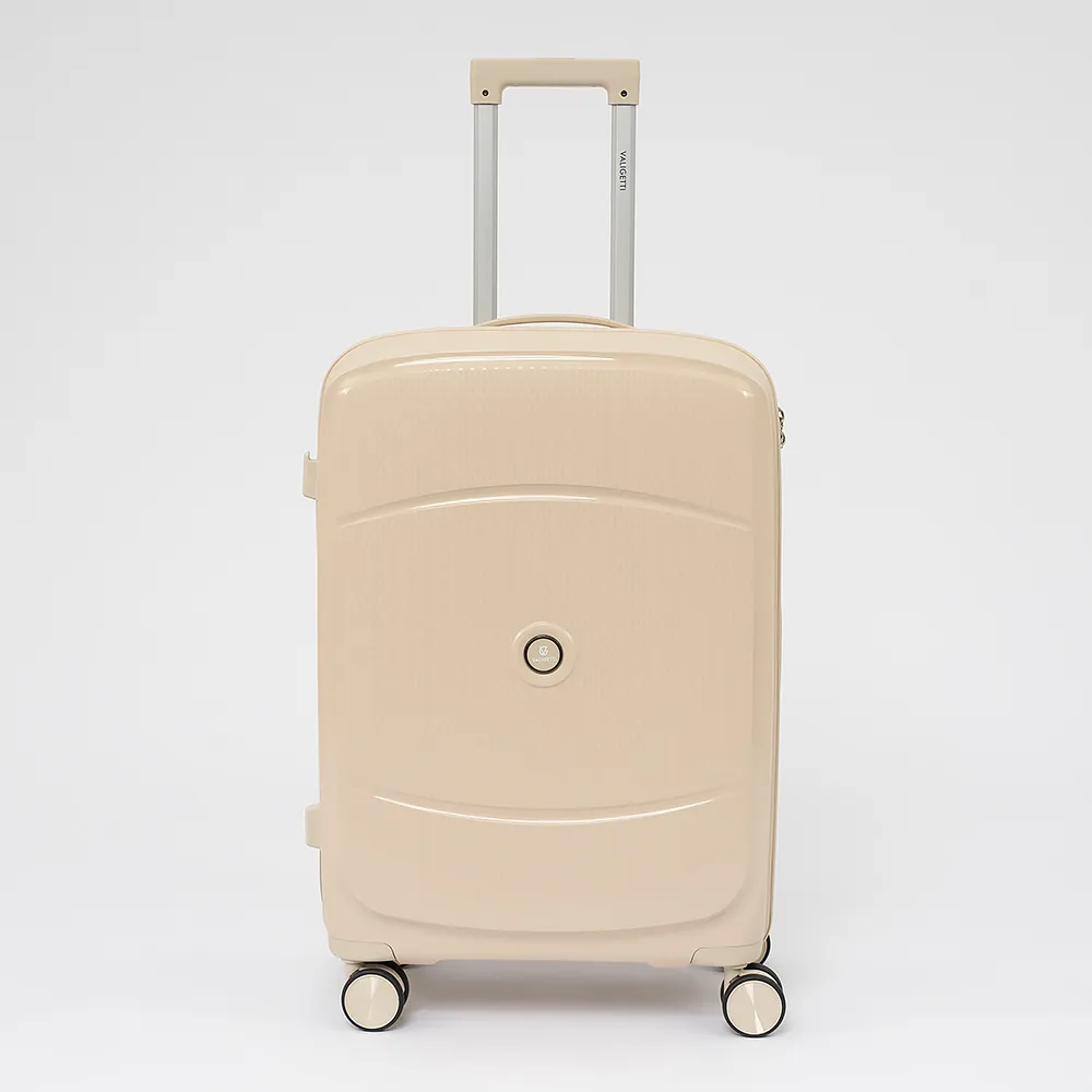 Чемодан-спиннер от торговой марки Valigetti выполнен из ударопрочного полипропилена с антивандальной рельефной поверхностью серо-зеленого цвета. Модель на четырех сдвоенных пластиковых колесах, с выдвижной металлической ручкой, ручкой-переноской сверху и сбоку, пластиковыми ножками для защиты от износа. Закрывается молнией №8 антивор с двумя встречными бегунками, имеется кодовый замок утопленный в корпус. Внутри: фирменная подкладка, в одной части - перекрестные ремни для фиксации багажа, в другой - клапан-разделитель на молнии, карман-сетка на молнии. Сбоку имеются крючки для подвешивания сумки или пакета.