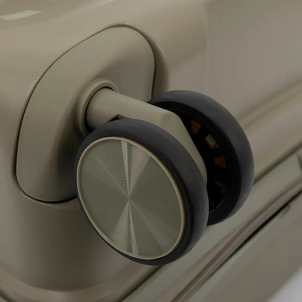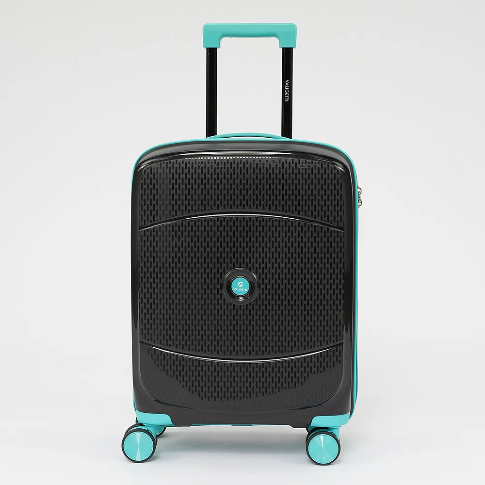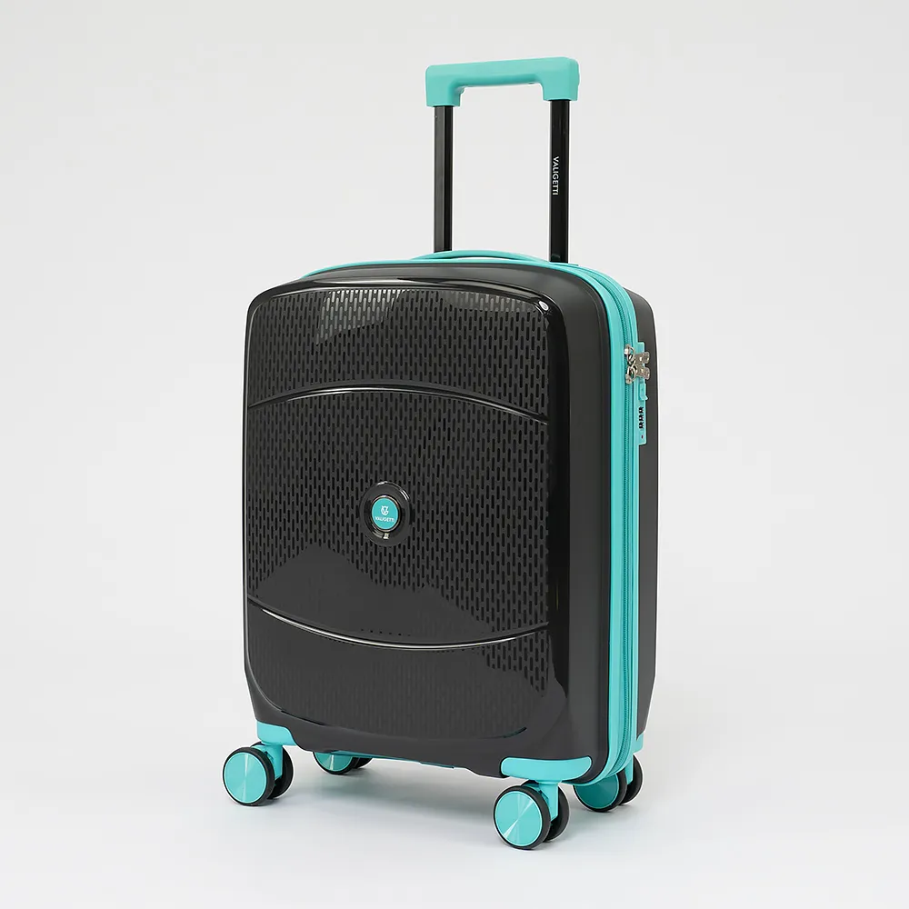 Чемодан-спиннер от торговой марки Valigetti выполнен из ударопрочного полипропилена с антивандальной рельефной поверхностью серо-зеленого цвета. Модель на четырех сдвоенных пластиковых колесах, с выдвижной металлической ручкой, ручкой-переноской сверху и сбоку, пластиковыми ножками для защиты от износа. Закрывается молнией №8 антивор с двумя встречными бегунками, имеется кодовый замок утопленный в корпус. Внутри: фирменная подкладка, в одной части - перекрестные ремни для фиксации багажа, в другой - клапан-разделитель на молнии, карман-сетка на молнии. Сбоку имеются крючки для подвешивания сумки или пакета.
