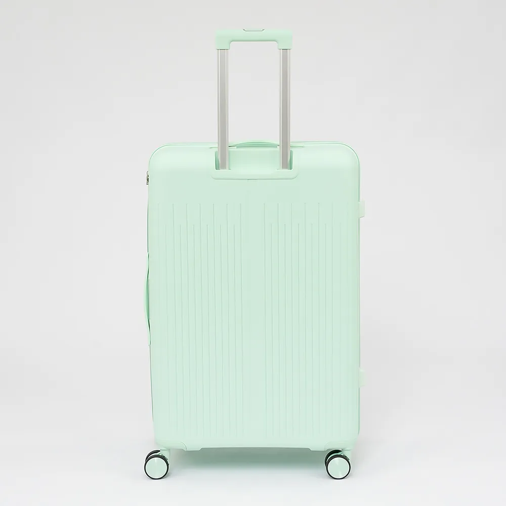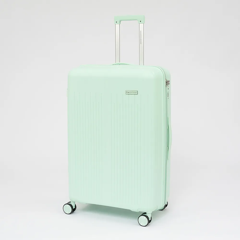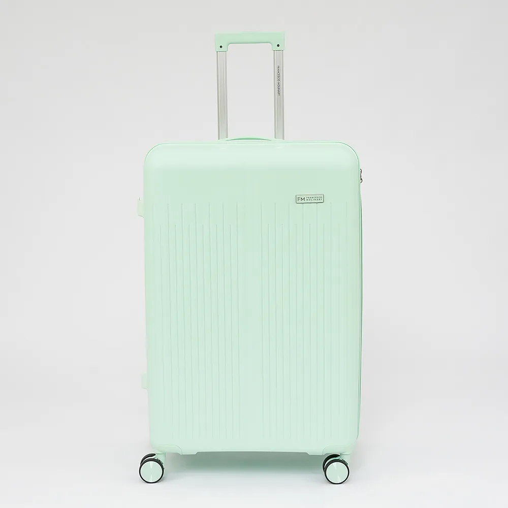 Маневренный чемодан-спиннер от торговой марки Francesco Molinary выполнен из ударопрочного полипропилена светло-зеленого цвета. Модель на четырех сдвоенных пластиковых колесах, с выдвижной телескопической ручкой с кнопкой, прорезиненной ручкой-переноской сверху и сбоку, пластиковыми ножками сбоку. Отделение на молнии с двумя встречными бегунками, имеется кодовый замок, утопленный в корпус. Закрывается на двойную антивандальную молнию антивор. Внутри: фирменная подкладка, в одной части - клапан-разделитель и два кармана на молнии, в другой - перекрестные фиксирующие ремни для багажа, посередине имеется карман на молнии. Верхние ножки выполнены в виде крючков для подвешивания.