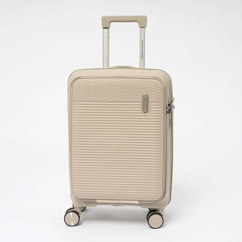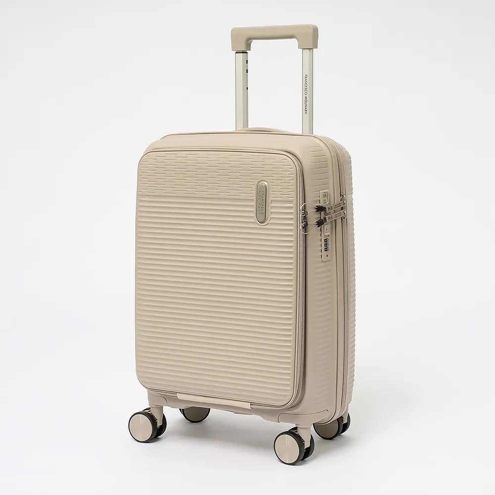 Чемодан-спиннер от торговой марки Francesco Molinary из ударопрочного термостойкого полипропилена с рельефной поверхностью черного цвета. Модель на четырех сдвоенных пластиковых колесах, с выдвижной телескопической ручкой, прорезиненной ручкой для переноски сверху и сбоку. Закрывается двойной антивандальной молнией антивор, имеется утопленный кодовый замок TSA. Внутри: фирменная подкладка, водонепроницаемый карман и карман-сетка на молнии и дополнительный карман на молнии на боковой стенке чемодана, а так же ремни для фиксации багажа. Имеется молния для увеличения объема. Сбоку имеются крючки для подвешивания сумки или пакета.