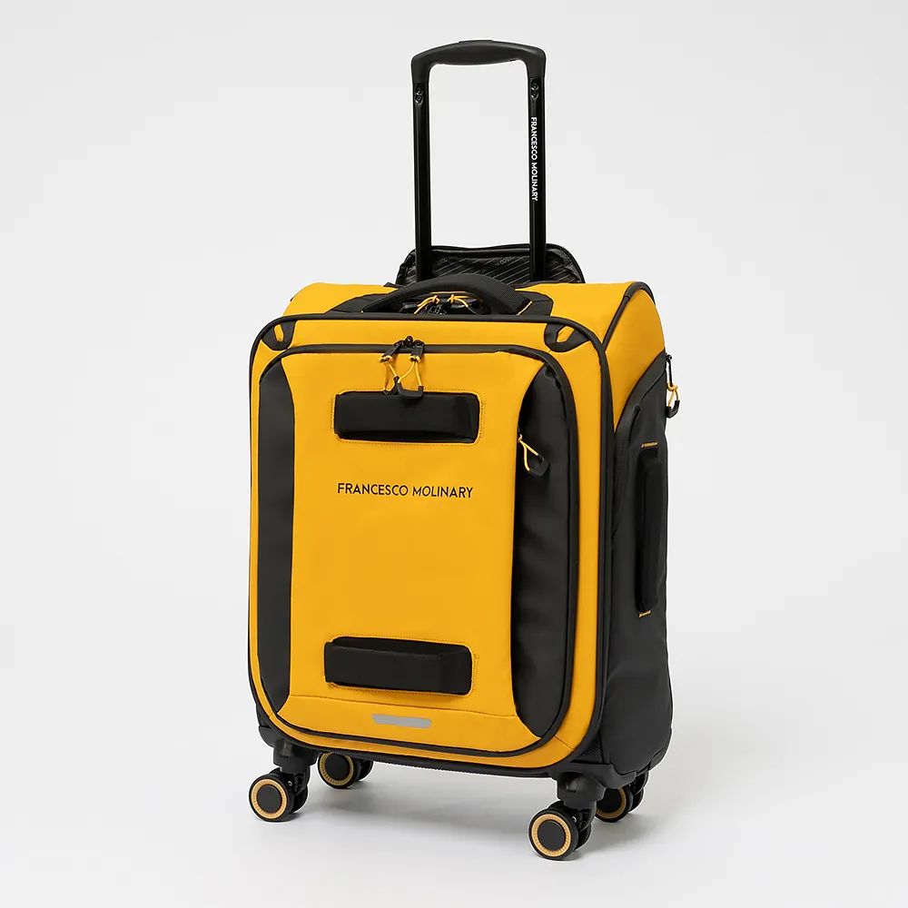 Чемодан-спиннер от торговой марки Francesco Molinary из прочного водоотталкивающего полиэстера цвета хаки. Модель на четырех сдвоенных пластиковых колесах, с выдвижной ручкой с кнопкой ( в сложенном виде закрывается клапаном на молнии) и металлическими трубками, плотными набивными ручками сверху и сбоку. Низ чемодана изготовлен из плотного прорезиненного материала, а углы и задняя стенка защищены накладками для дополнительной прочности. Имеется 2 глубоких боковых кармана, большой откидной карман на лицевой стороне и скрытый карман на молнии. Закрывается двойной антивандальной непромокаемой молнией №8 со встречными бегунками, имеется кодовый замок. Внутри: фирменная подкладка, в глубоком отделении - ремни для фиксации багажа, на крышке - карман-сетка на молнии. Имеется молния для увеличения объема.