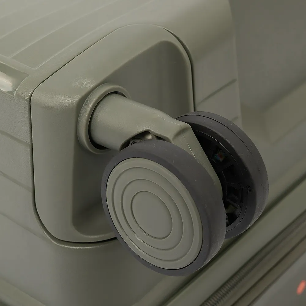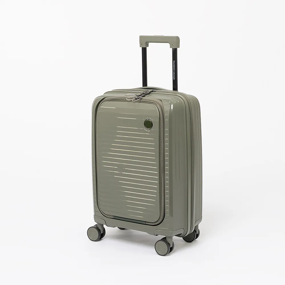 Чемодан-спиннер от торговой марки Francesco Molinary из ударопрочного термостойкого полипропилена с рельефными полосами в сером цвете. Модель на четырех сдвоенных пластиковых колесах, с выдвижной телескопической ручкой, прорезиненной ручкой сверху. Закрывается двойной антивандальной молнией антивор, имеется кодовый замок. Внутри: фирменная подкладка плотностью 210 Ден, в одной части - клапан-разделитель на молнии, водонепроницаемый карман, в другой - перекрестные фиксирующие ремни для багажа. На лицевой стороне - функциональный карман на молнии с двумя встречными бегунками, раскрытие регулируется вытачками на липучках. Внутри: накладной карман с уплотненной стенкой для ноутбука, два накладных кармана, карман-сетка на молнии.