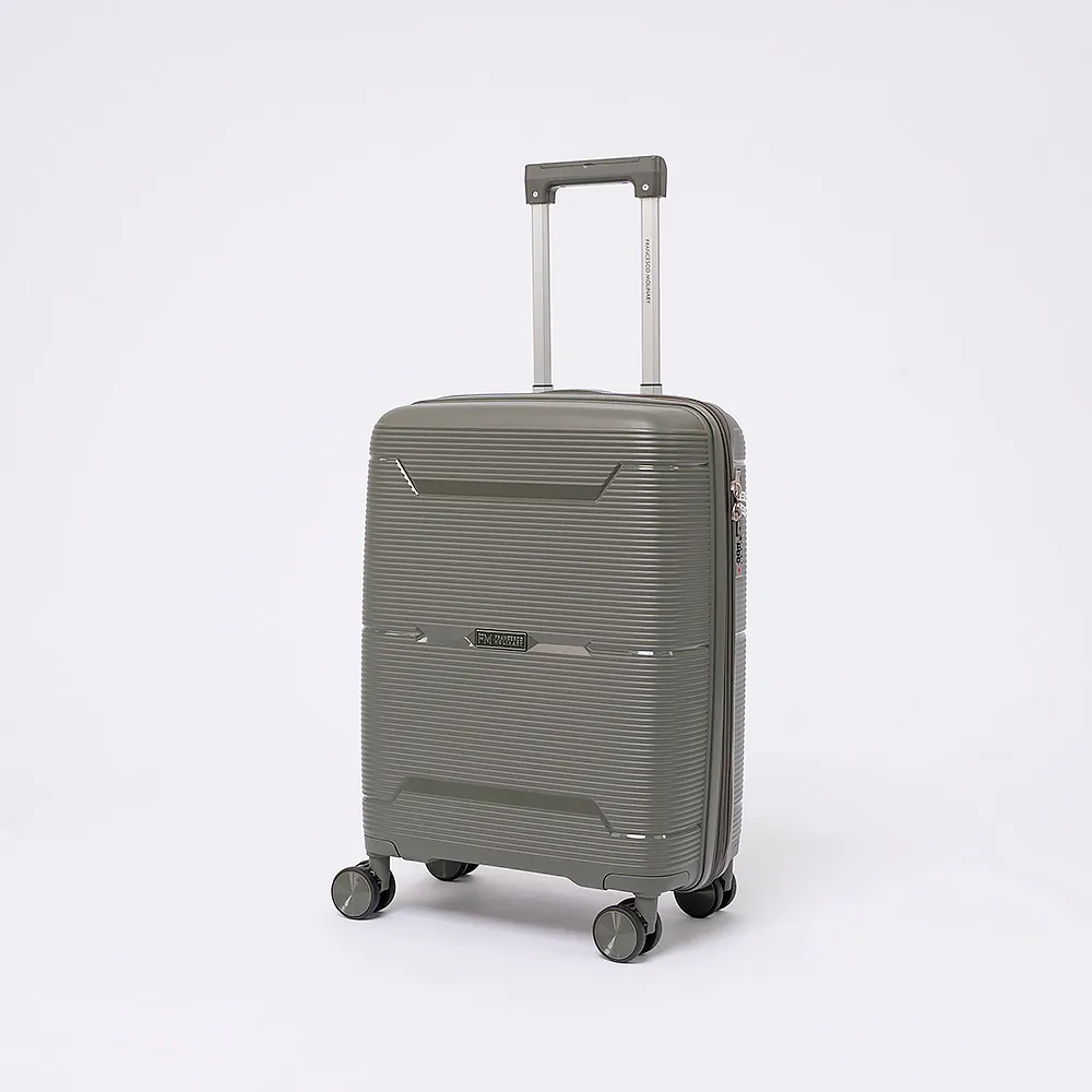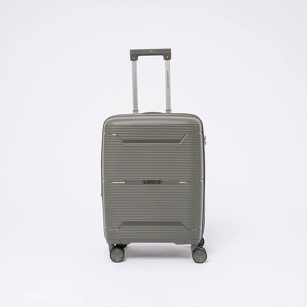Чемодан-спиннер от торговой марки Francesco Molinary из ударопрочного полипропилена с рельефной антивандальной поверхностью цвета хаки. Модель на четырех сдвоенных колесах, с выдвижной ручкой с кнопкой и железными трубками, ручкой-переноской сверху. Закрывается молнией №8 антивор, имеется кодовый замок TSA с USB входом. Внутри: фирменная подкладка, в одной части - клапан-разделитель на молнии, карман-сетка на молнии и водонепроницаемый карман, в другой части - перекрестные ремни для фиксации багажа. На выдвижной ручке предусмотрена откидная подставка для телефона и крючки подвешивания пакетов.