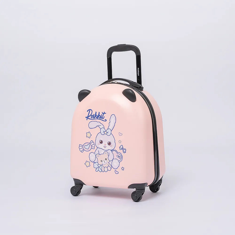 Чемодан-спиннер от торговой марки Ecotope из ударопрочного ABS пластика и поликарбоната в розовом цвете с изображением весёлого зайчика. Модель на четырех колесах, с выдвижной ручкой и ручкой-переноской сверху. Закрывается молнией. Внутри: фирменная подкладка, в одной из частей - клапан-разделитель на молнии, в другой - перекрестные ремни для фиксации багажа.