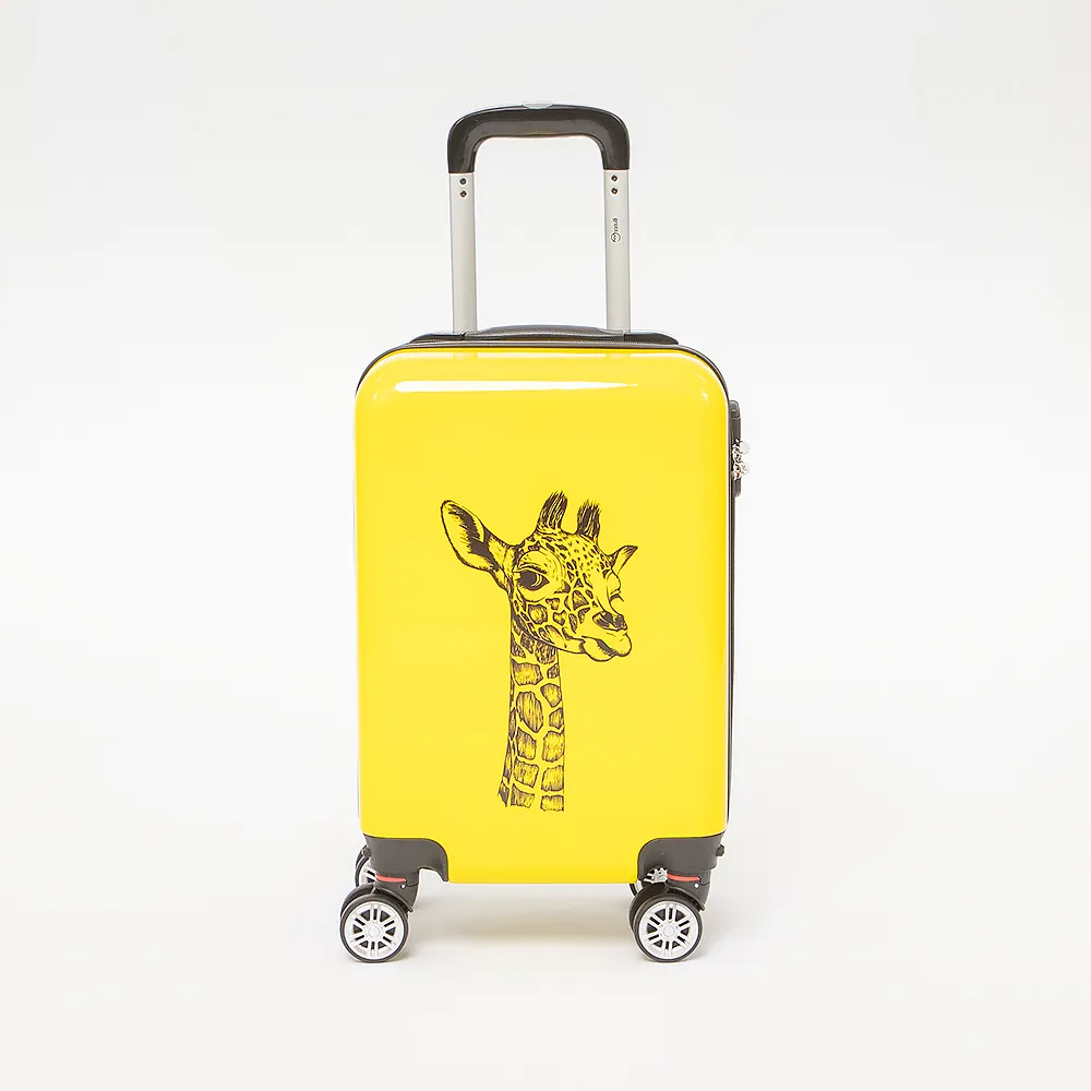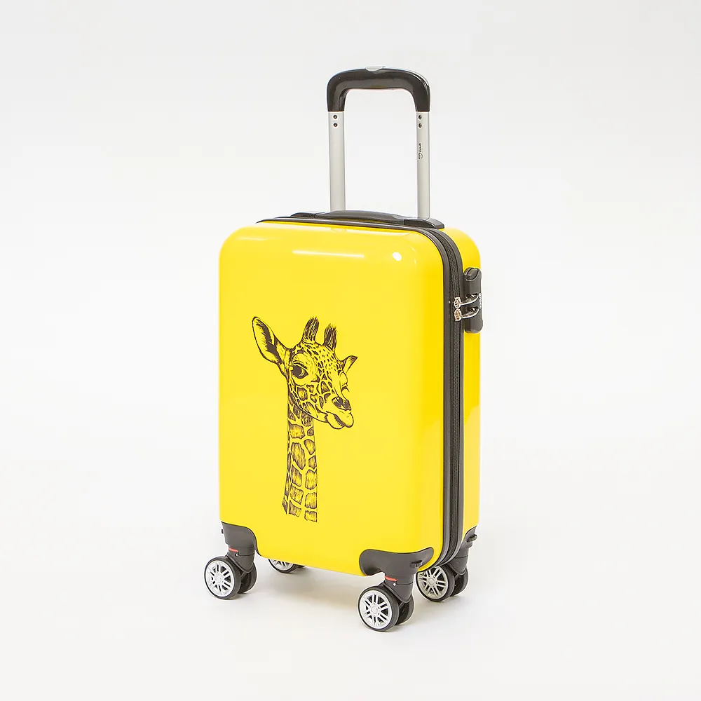 Детский чемодан-спиннер от торговой марки Grott из прочного ABS-пластика и поликарбоната розового цвета. Декорирован оригинальным рисунком с изображением зайца. Модель на четырех сдвоенных съемных пластиковых колесах, с выдвижной металлической ручкой с кнопкой, ручкой сверху. Закрывается молнией 8 размера, имеется кодовый замок. Внутри: уплотненная текстильная подкладка, в одной части - перекрестные ремни для фиксации багажа на застежке фастекс, в другой части - разделитель-сетка на молнии. Чемодан подойдет в качестве ручной клади.