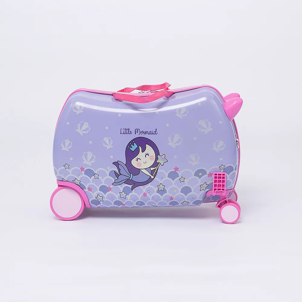 Чемодан-каталка из ударопрочного ABS пластика и поликарбоната в синем цвете с элементами красного цвета с изображением машинок и мишек. Модель на четырех колесах, два из которых поворотные, два - нет. С двумя ручками переносками и съемным регулируемым плечевым ремнем. Закрывается молнией. Внутри: фирменная подкладка, в одной из частей - клапан-разделитель на молнии, в другой - перекрестные ремни для фиксации багажа. Имеется дополнительный кармашек на молнии.