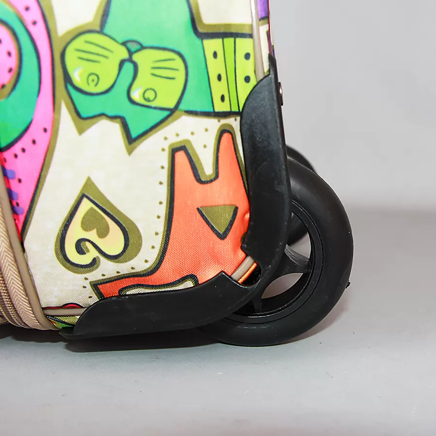 - Сумка оснащена двумя колёсами, которые для надёжности утоплены в корпус, выдвижной металлической ручкой и двумя ручками с фиксирующим ремешком на липучке