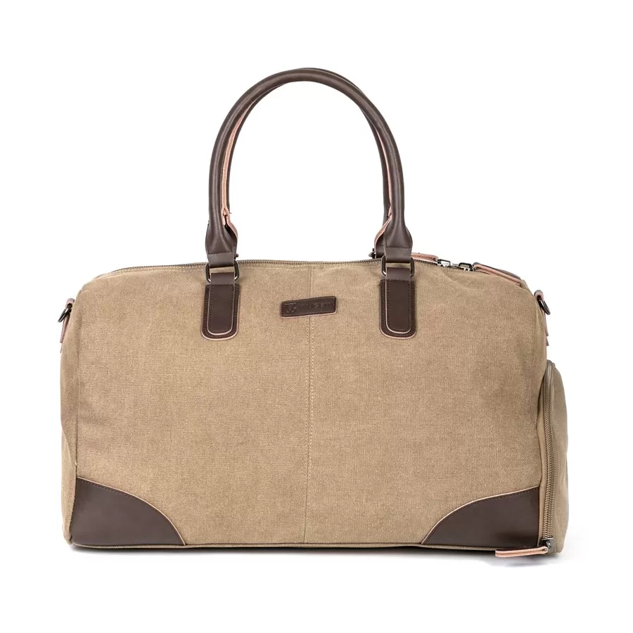 Дорожно-спортивная сумка от торговой марки Valigetti из практичного текстильного материала и искусственной кожи. Модель с двумя плотными удлиненными ручками и съемным регулируемым плечевым ремнем, выполненным из текстильного материала. Отделение на молнии. Внутри: текстильная подкладка, два накладных кармана, накладной карман с уплотненной стенкой для ноутбука. Сбоку имеется отделение для обуви. Углы усилены кожаными вставками. Дно оснащено металлическими ножками для защиты от износа.