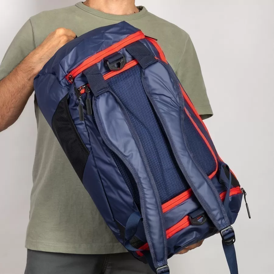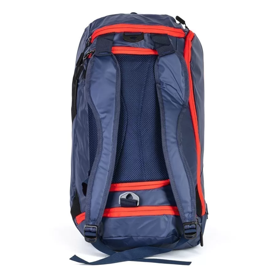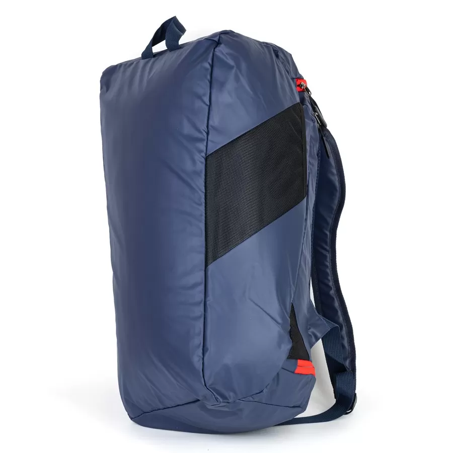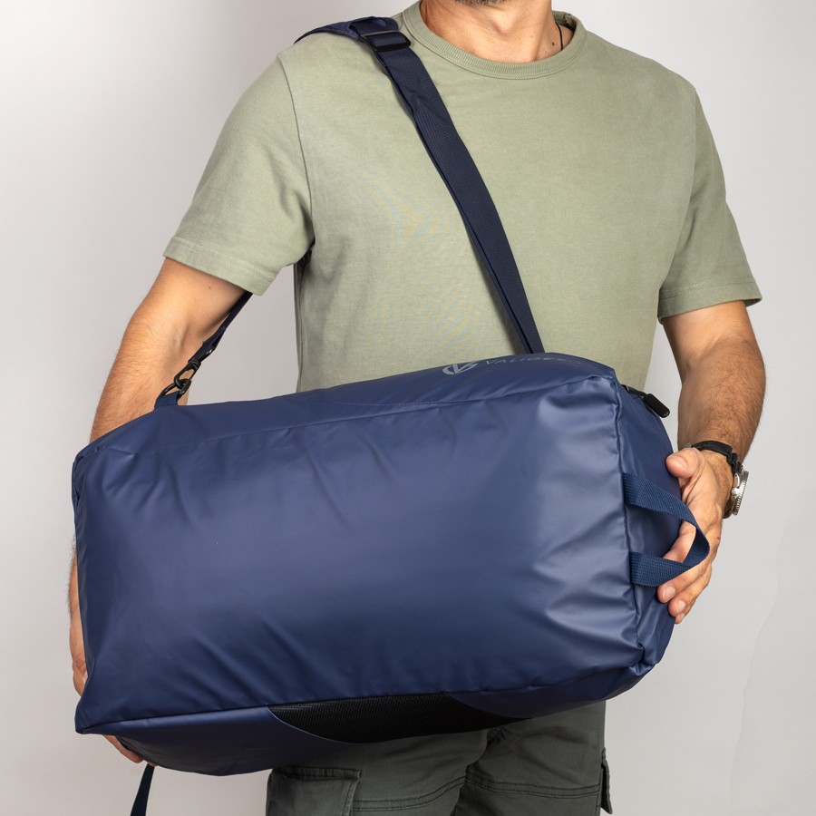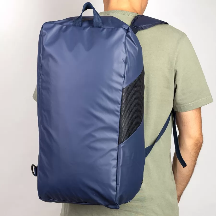 Дорожно-спортивная сумка-рюкзак от торговой марки Valigetti из практичного текстильного материала синего цвета. Модель с двумя ручками, съемным регулируемым плечевым ремнем и плечевыми лямками. Закрывается клапаном на молнии с двумя встречными бегунками. Внутри: карман на молнии.