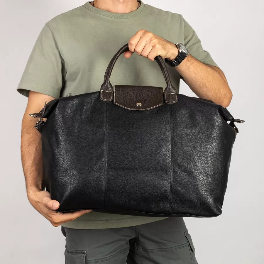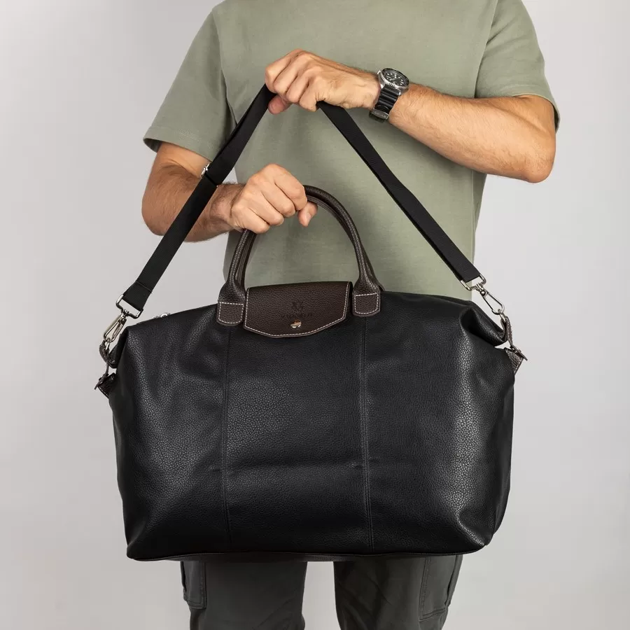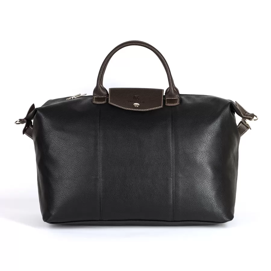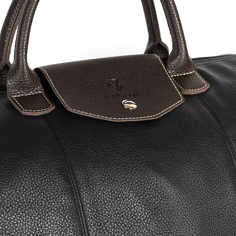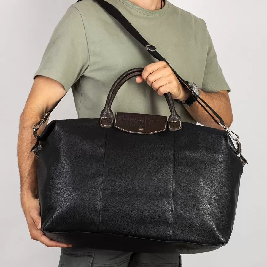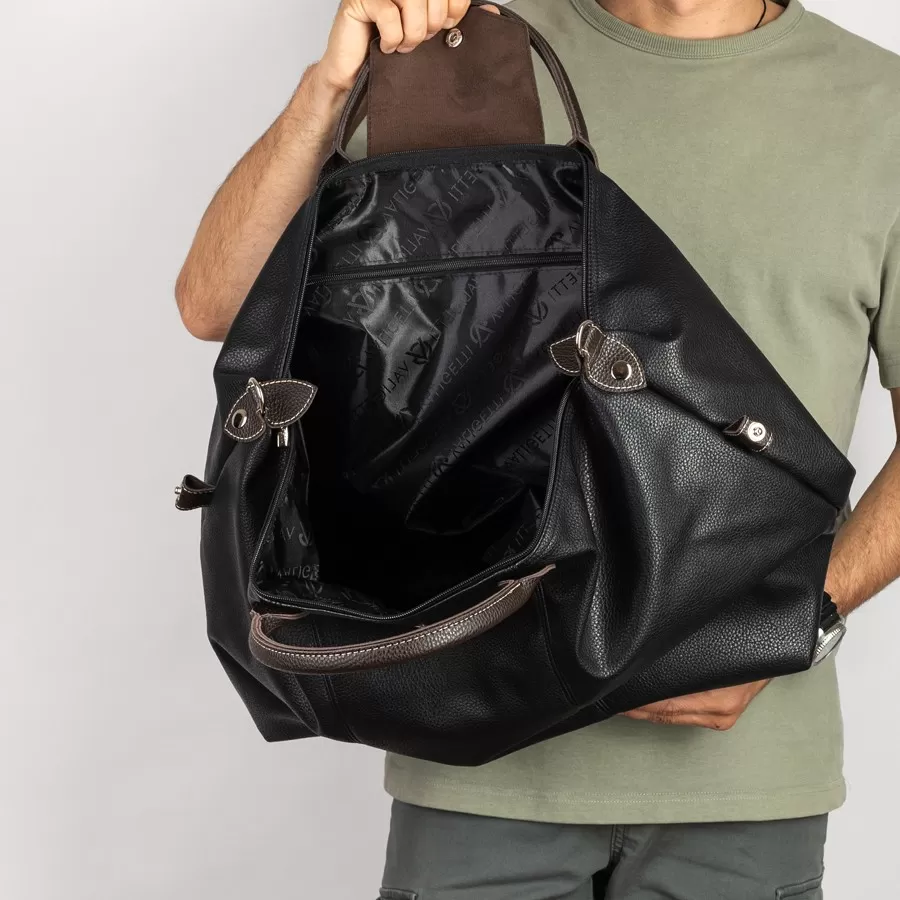 Дорожная сумка от торговой марки Valigetti из искусственной кожи с контрастной отстрочкой. Вместительная модель с двумя плотными ручками и съемным регулируемым плечевым ремнем. Отделение на молнии, которое фиксируется по бокам кнопками. Внутри: фирменная подкладка и карман на молнии.