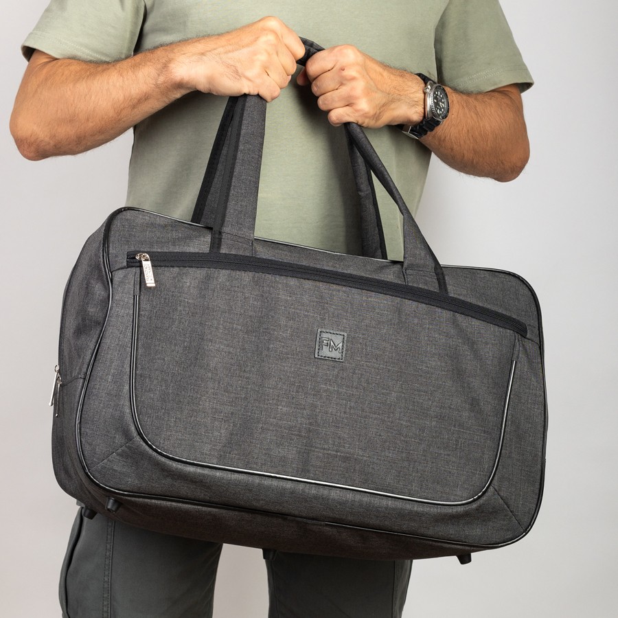 Дорожная сумка от торговой марки Francesco Molinary выполнена из плотной текстильной ткани. Модель с двумя плотными ручками и вместительным отделением на молнии. Внутри: фирменная подкладка. На лицевой стороне – карман на молнии. Дно сумки оснащено пластиковыми ножками для защиты от износа.
