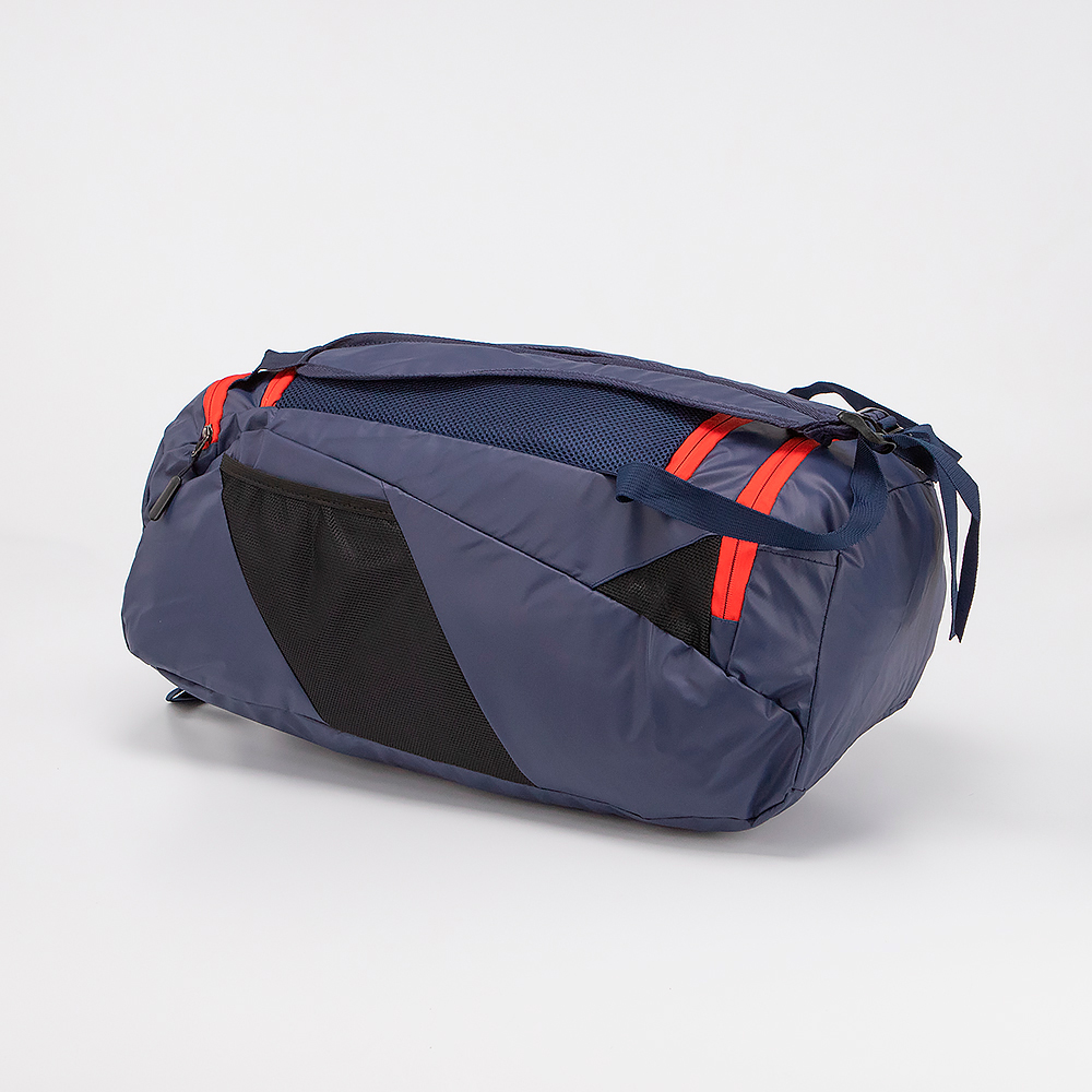 Сумка-рюкзак от торговой марки Valigetti выполнен из практичного текстильного материала синего цвета с оранжевыми элементами. Модель с лямкой для переноски, длинным регулируемым плечевым ремнем с наплечником и регулируемыми плечевыми ремнями. Закрывается клапаном на молнии. По бокам - карманы на молнии, на задней стороне - карман-сетка. Спереди - фигурный карман на молнии.
