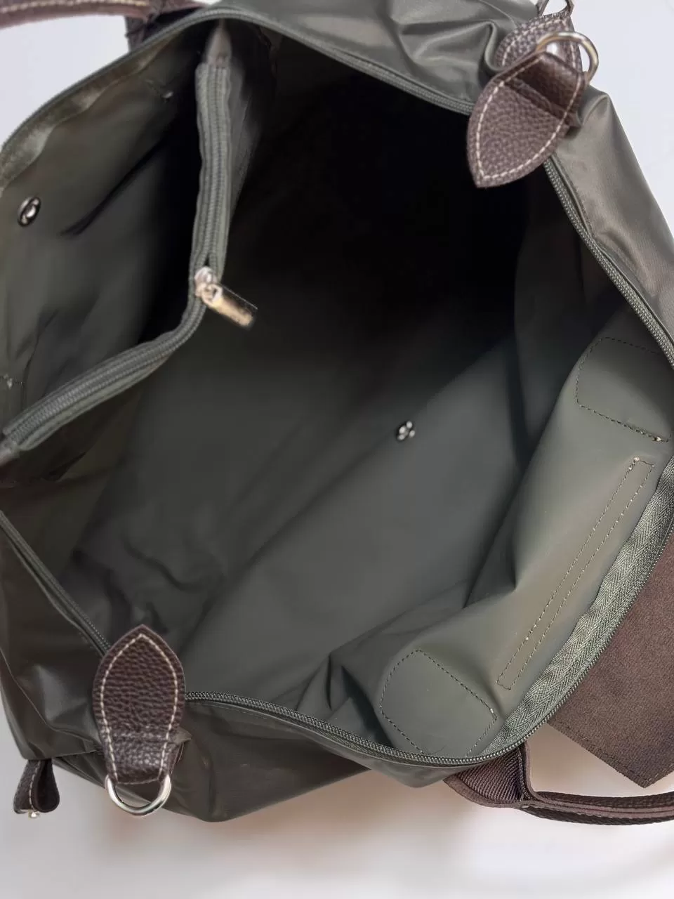 Складная сумка из прочной ткани имеет достаточно большой основной отдел без перегородок, а также потайной карман на молнии.