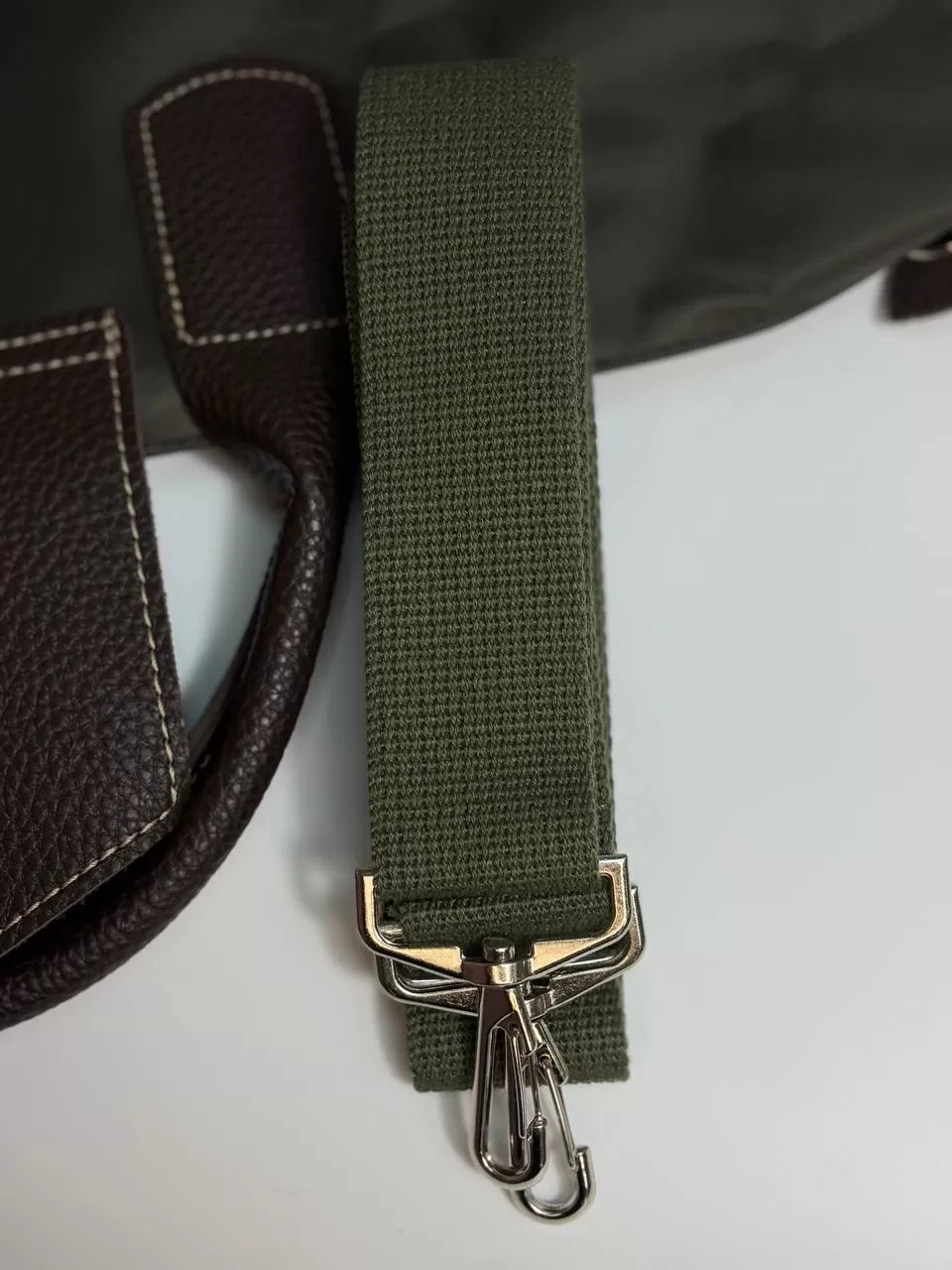 Сумка изготовлена из сатина с элементами искусственной кожи. Фурнитура выполнена из стали, что делает её надёжной и долговечной.