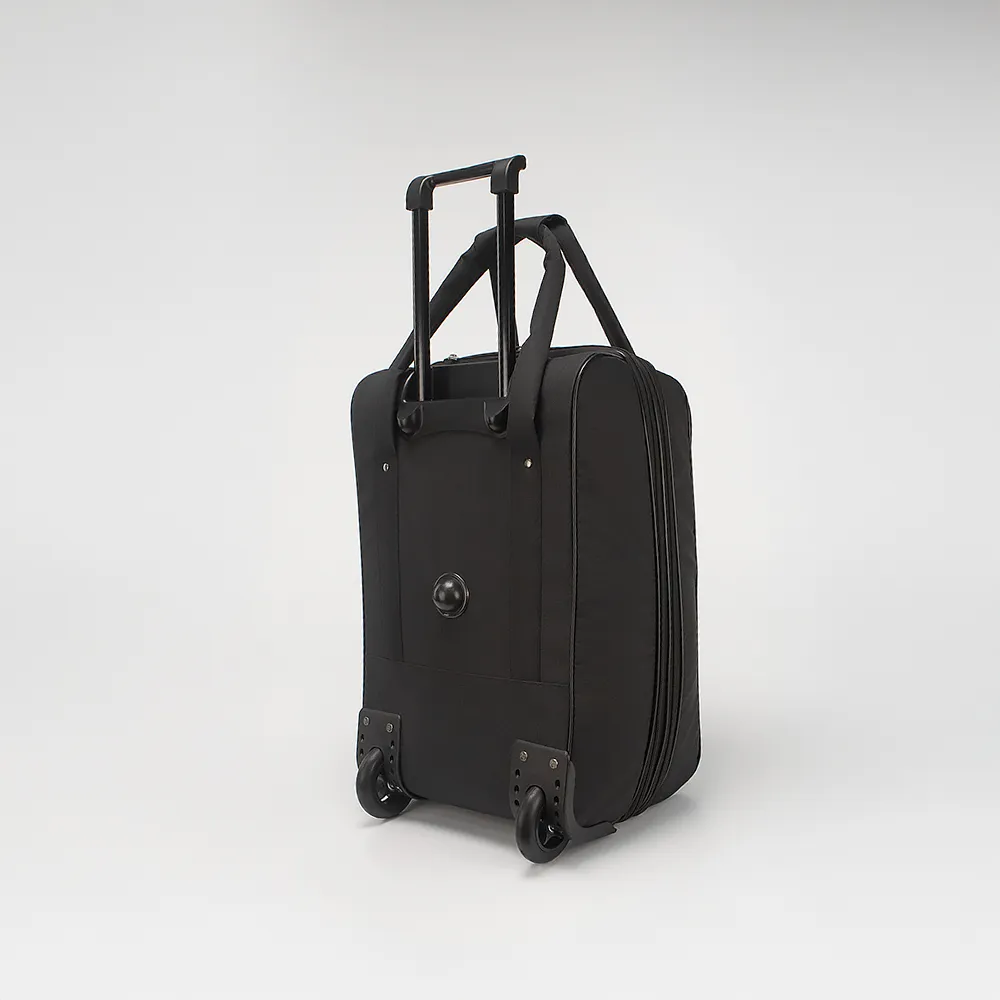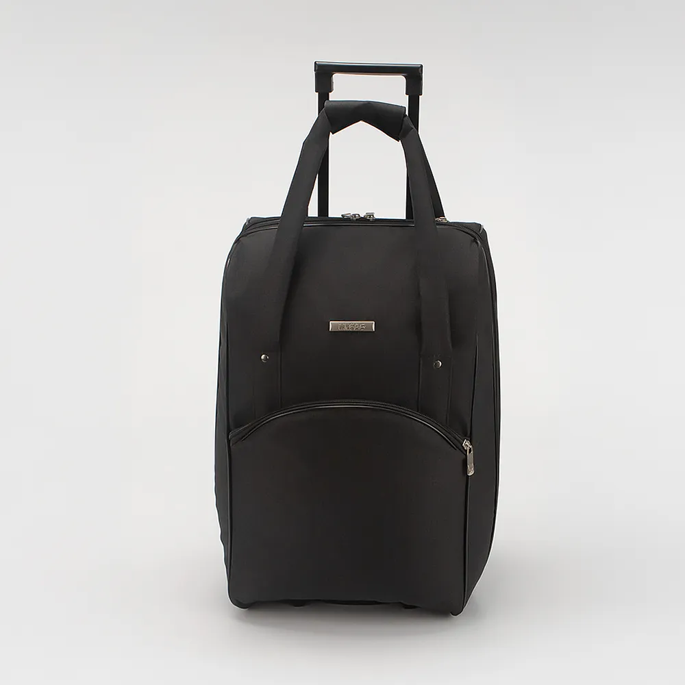 Сумка-тележка от торговой марки Mr.Bag из практичного текстильного материала в сочетании оранжевого, синего и бежевого цвета. Декорирована оригинальным принтом с изображением кошек. Модель на двух колесах, утопленных в корпус, с выдвижной ручкой, двумя ручками с фиксатором на липучке, пластиковыми ножками и держателем на дне. Отделение на молнии широко раскрывается на 180 градусов. Внутри: текстильная подкладка, перекрестные ремни для фиксации багажа в обеих частях. Имеется раздвижка для увеличения объема. На лицевой стороне – карман на молнии. Сумка весом 2,4 кг рассчитана на объем 52,9 литра.