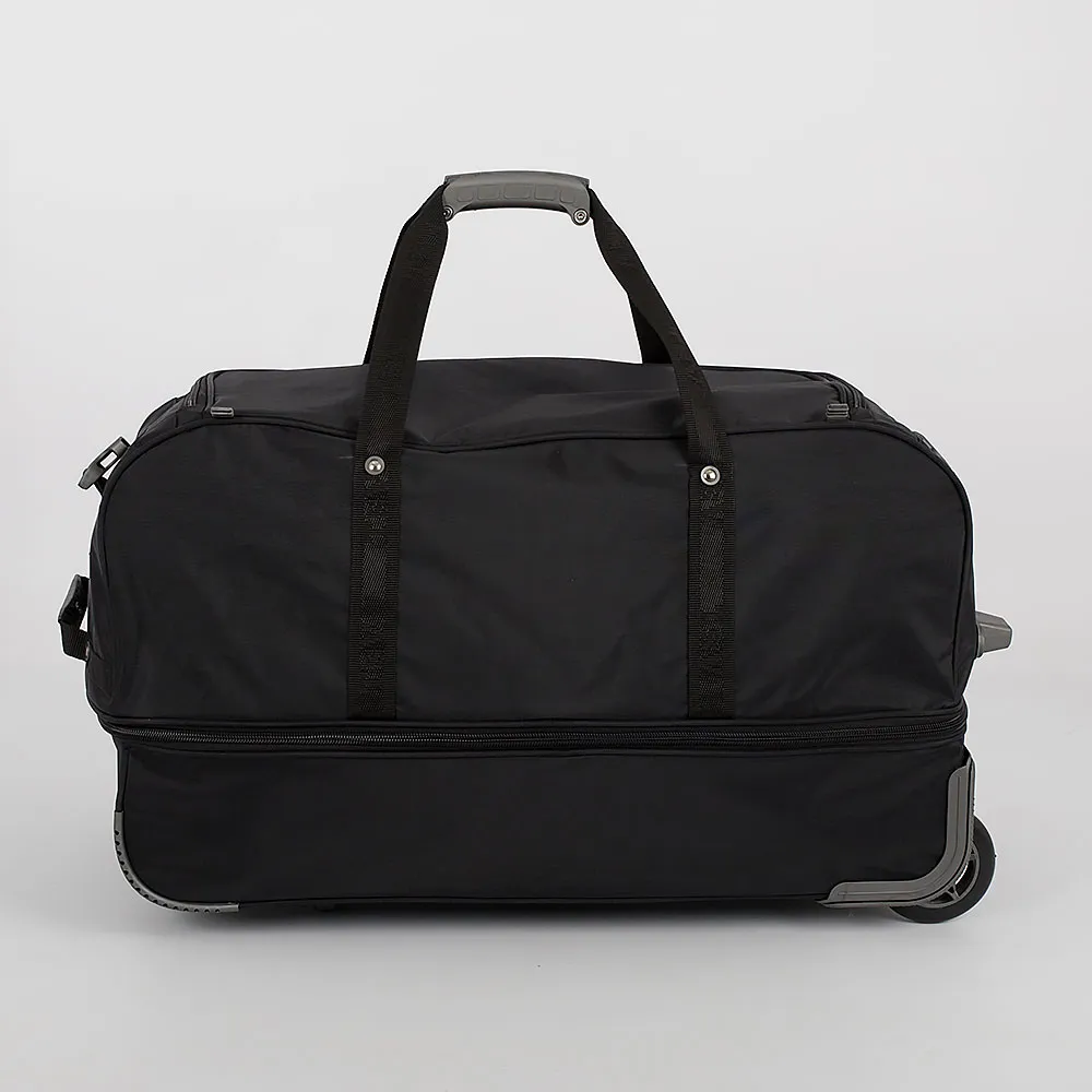 Практичная раздвижная сумка-тележка от бренда TSV выполнена из плотного текстильного материала серого цвета. Внутри одно основное отделение под молнией, снаружи прорезной карман на молнии. Модель на двух удобных ручках для переноса снабжена колесами и выдвижной ручкой. Дно модели оснащено пластиковыми «ножками» для защиты от износа и лучшей устойчивости.