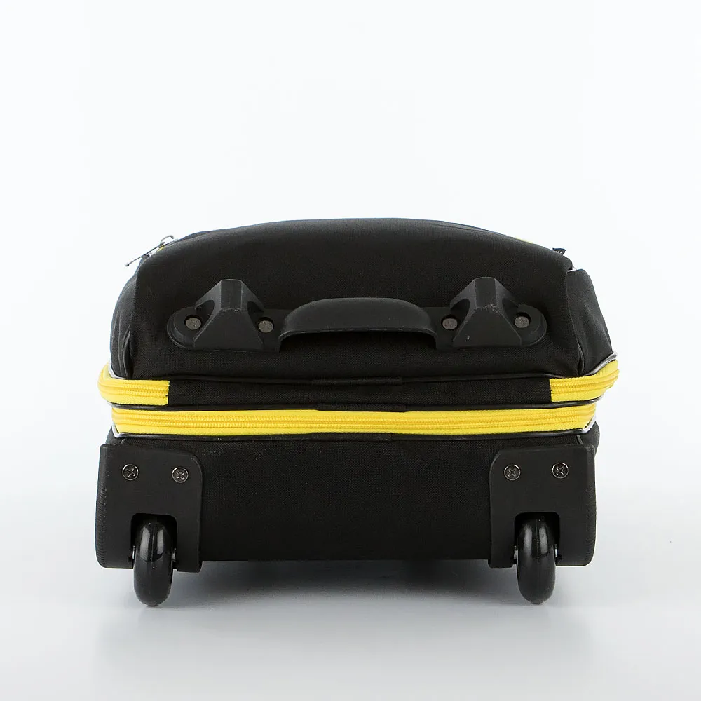 Сумка-тележка от торговой марки Mr.Bag из практичного текстильного материала коричневого цвета с принтом гусиная лапка. Модель на двух колесах, утопленных в корпус, с выдвижной ручкой, двумя ручками с фиксатором на липучке, пластиковыми ножками и держателем на дне. Отделение на молнии широко раскрывается на 180 градусов. Внутри: текстильная подкладка, перекрестные ремни для фиксации багажа в обеих частях. Имеется раздвижка для увеличения объема. На лицевой стороне - карман на молнии.