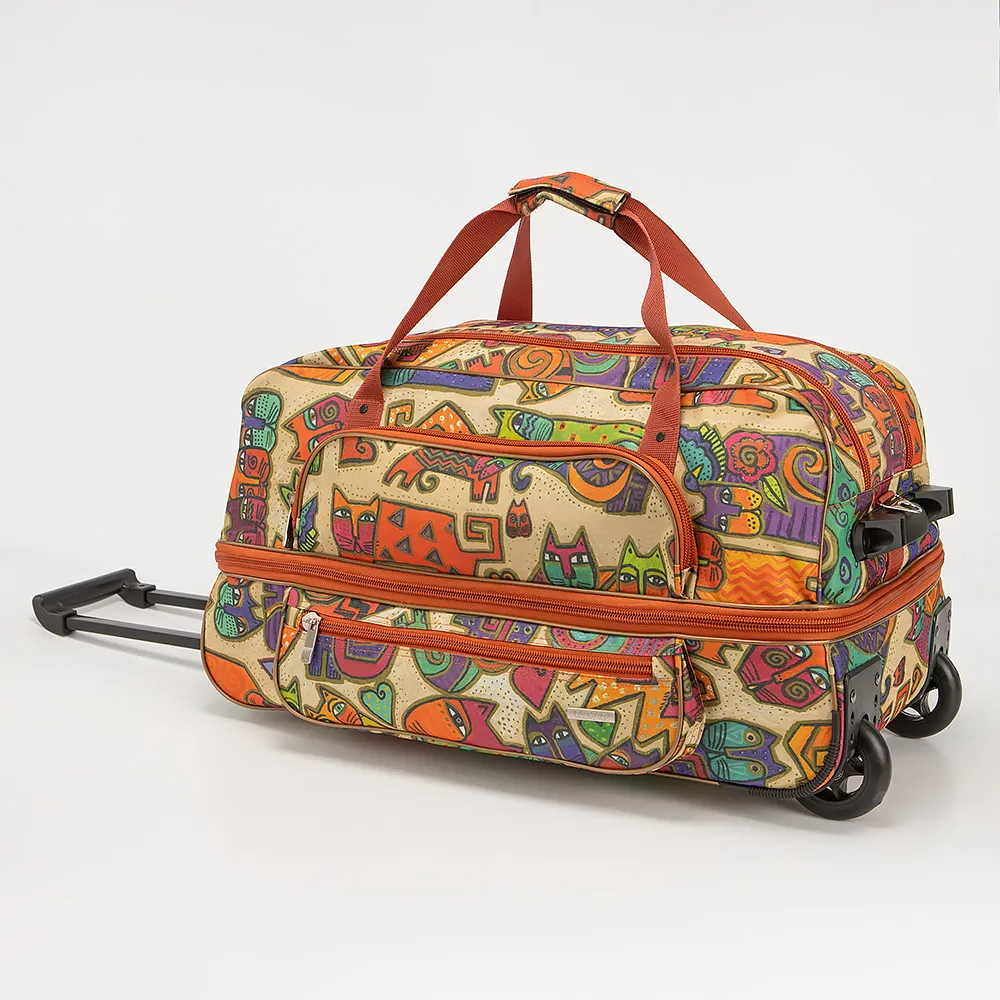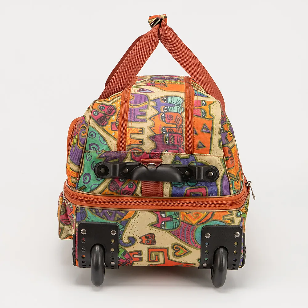 Дорожно-спортивная сумка на колёсах от торговой марки Mr.Bag выполнена из плотного и практичного текстильного материала. Сумка оснащена двумя колёсами, которые для надёжности утоплены в корпус, выдвижной ручкой, двумя ручками с фиксатором на липучке, съемным регулируемым плечевым ремнем, ручкой-переноской, пластиковыми ножками на дне и сбоку. Вместительное отделение закрывается двумя молниями. Внутри: без подкладки. На лицевой стороне - два кармана на молнии. Имеется раздвижка на молнии для увеличения объёма.