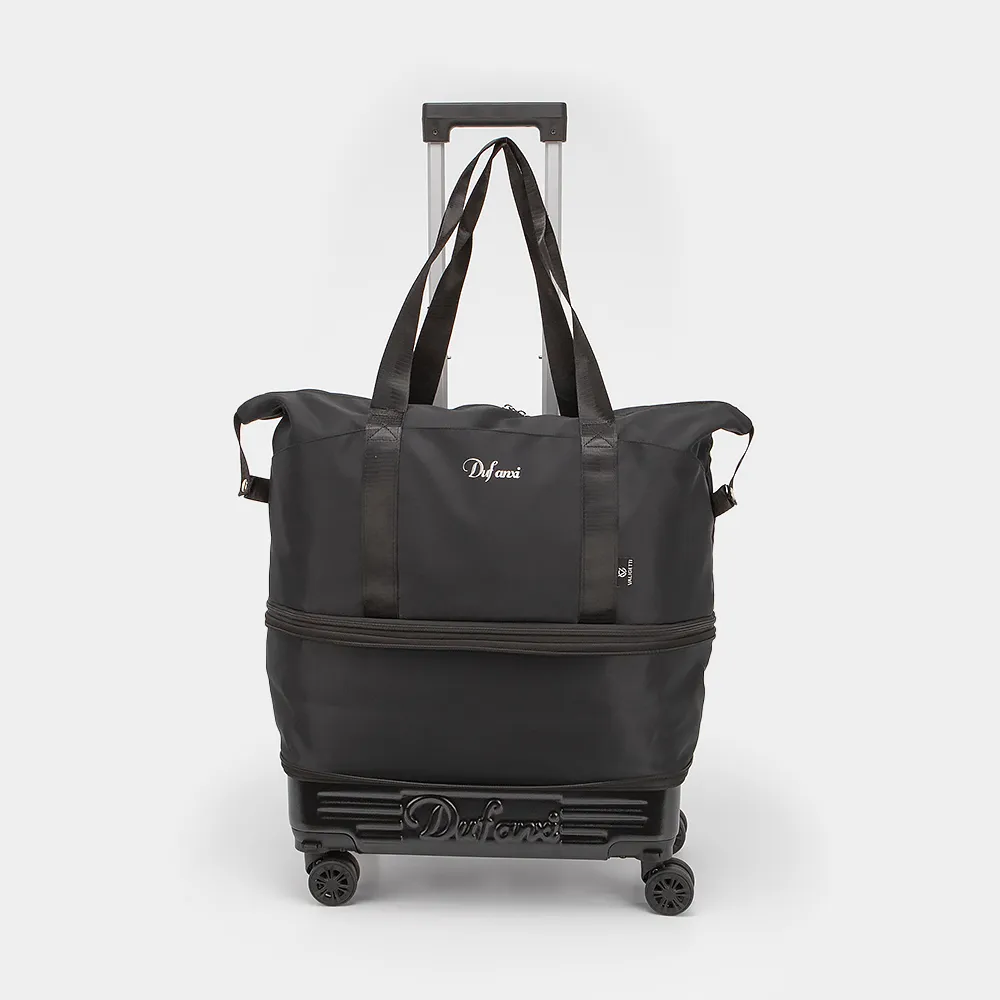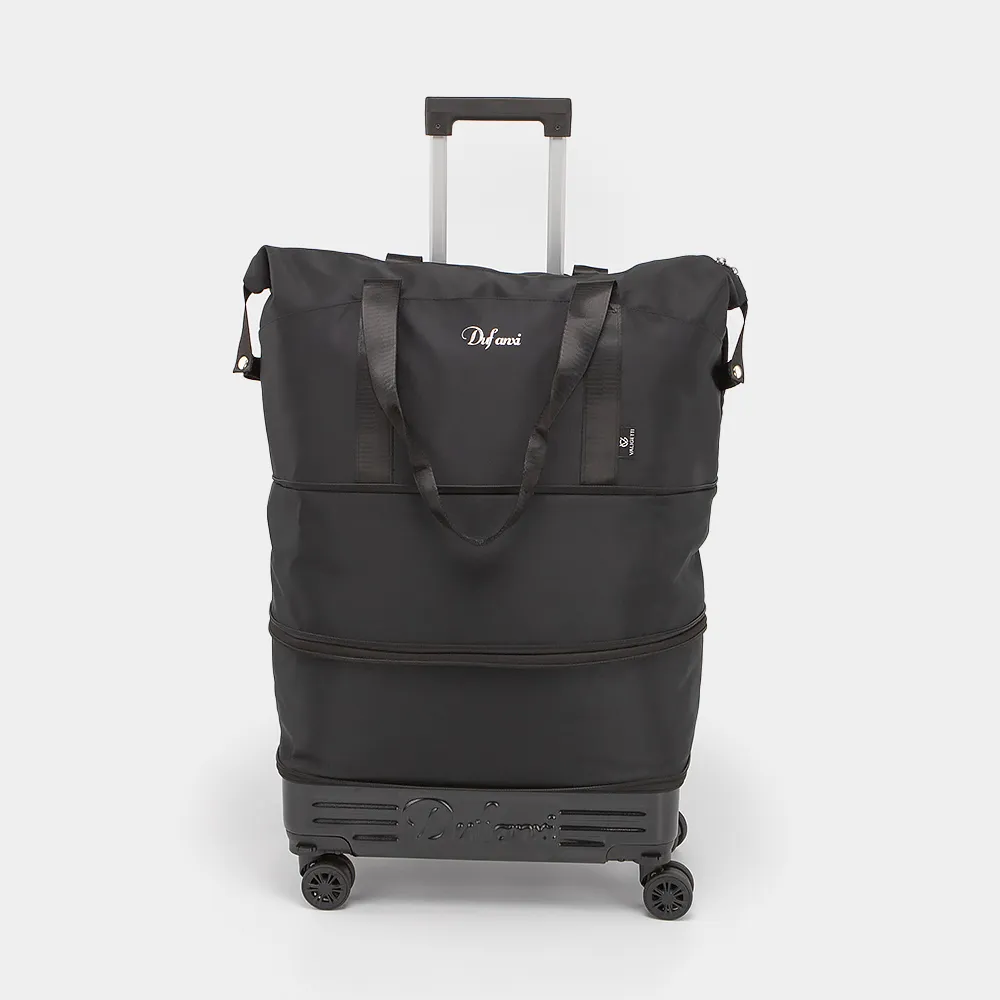 Практичная хозяйственная сумка-тележка от торговой марки Valigetti выполнена из плотной текстильной ткани черного цвета. Модель-трансформер с четырьмя двойными съемными колесами. В сложенном виде компактна и имеет две удлиненные ручки. В разложенном виде возможно два варианта сложения благодаря раздвижке на молнии. Сумка с выдвижной металлической ручкой. Глубокое отделение на молнии. На задней стороне - петля для крепления на выдвижную ручку и карман на молнии.