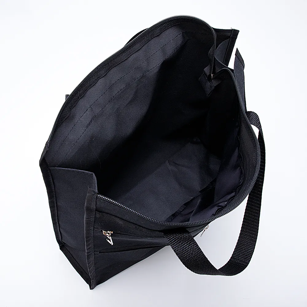 Хозяйственная сумка от торговой марки Mr.Bag выполнена из практичного текстильного материала черного цвета. Модель с двумя ручками. Отделение на молнии без подкладки. На лицевой стороне - три кармана на молнии.