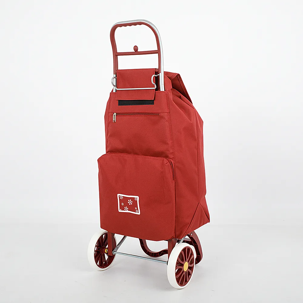 Новая оригинальная модель, сочетающая в себе вместительность, практичность и стильный внешний вид - хозяйственная сумка от бренда Grott. Сумка выполнена из плотного текстильного материала бордового цвета. Основное отделение затягивается и запахивается клапаном, крепится к металлической конструкции на липучках. Снаружи два дополнительных кармана на молнии. Модель имеет эргономичную ручку для перевозки и два больших колеса. Дно модели оснащено надёжной «ножкой» для стоянки.