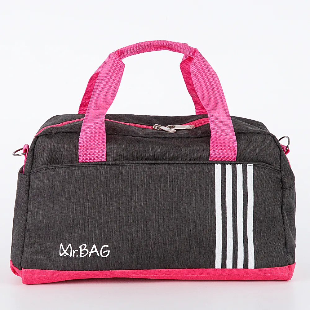 Компактная стильная спортивная сумка от бренда Mr.Bag выполнена из текстильного материала в сочетании бордового и черного цвета. Модель в форме купола, с двумя удлиненными ручками и съемным плечевым ремнем. Отделение на молнии, с текстильной подкладкой. Внутри: карман на молнии, накладной карман на молнии. На передней и задней сторонах – карман на молнии. Сбоку справа карман со скрытым кармашком на молнии. Спереди – декоративный принт с названием бренда и белыми вертикальными полосками.