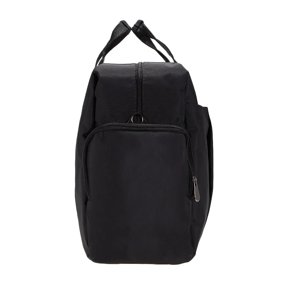 Дорожно-спортивная сумка от торговой марки Mr.Bag из плотного текстильного материала черного цвета. Вместительная модель с двумя ручками и съемным регулируемым плечевым ремнем. Отделение на молнии. Внутри: большой накладной карман, фиксирующийся ремешком на липучке, карман на молнии. На лицевой стороне – накладной карман на магнитной кнопке. По бокам – накладной карман на молнии.
