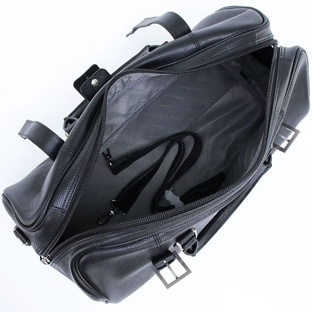 Дорожно-спортивная сумка от торговой марки Francesco Molinary из натуральной кожи коричневого цвета. Вместительная модель с двумя ручками с фиксатором на кнопке, съемным регулируемым плечевым ремнем. Закрывается двумя ремешками с пряжками. Отделение на молнии. Внутри: фирменная подкладка, карман на молнии. На задней стороне – карман на молнии. Дно оснащено металлическими ножками для защиты от износа.