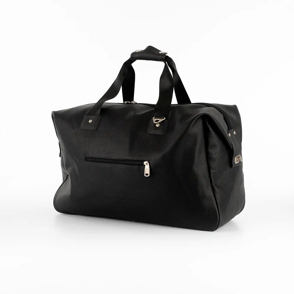 Дорожно-спортивная сумка от торговой марки Ecotope из искусственной кожи черного цвета. Вместительная модель с двумя ручками с фиксатором на кнопках. Отделение на молнии. Внутри: частичная подкладка, два накладных кармана. Края сумки крепятся по бокам поворотным замком, за счет чего меняется форма и объем сумки. На задней стороне – карман на молнии. Дно оснащено ножками для защиты от износа.