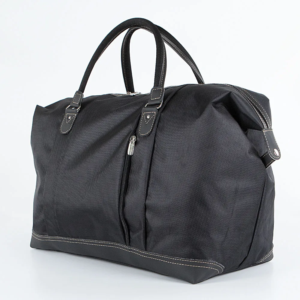 Дорожная сумка от торговой марки Francesco Molinary из практичного плотного текстильного материала серого цвета и искусственной кожи с контрастной отстрочкой. Вместительная модель с двумя плотными ручками и съемным регулируемым плечевым ремнем. Отделение на молнии, которая фиксируется по бокам кнопками, что позволяет менять объем и форму сумки. Внутри: фирменная подкладка. На лицевой стороне – карман на молнии, на задней – вертикальный карман на молнии. Дно оснащено прорезиненными накладками для защиты от износа.