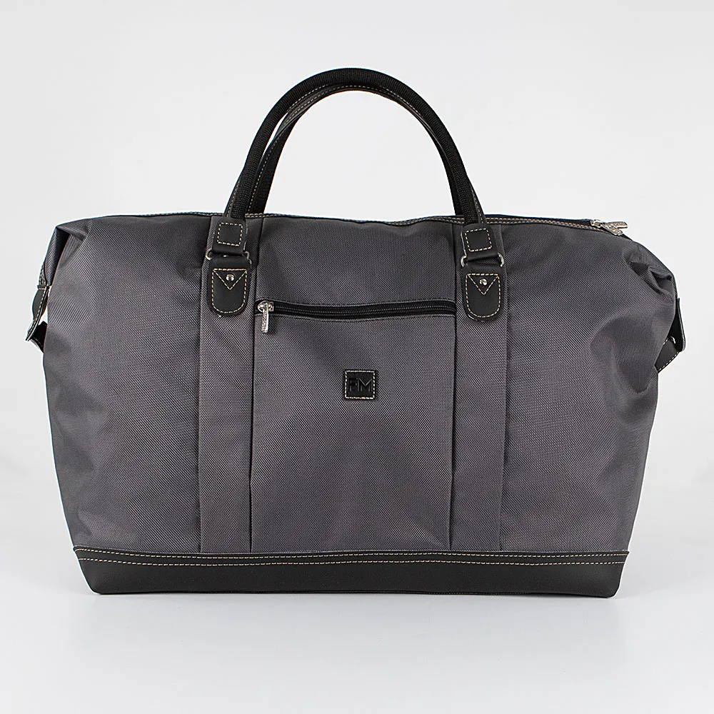 Дорожная сумка от торговой марки Francesco Molinary из практичного плотного текстильного материала серого цвета и искусственной кожи с контрастной отстрочкой. Вместительная модель с двумя плотными ручками и съемным регулируемым плечевым ремнем. Отделение на молнии, которая фиксируется по бокам кнопками, что позволяет менять объем и форму сумки. Внутри: фирменная подкладка. На лицевой стороне – карман на молнии, на задней – вертикальный карман на молнии. Дно оснащено прорезиненными накладками для защиты от износа.