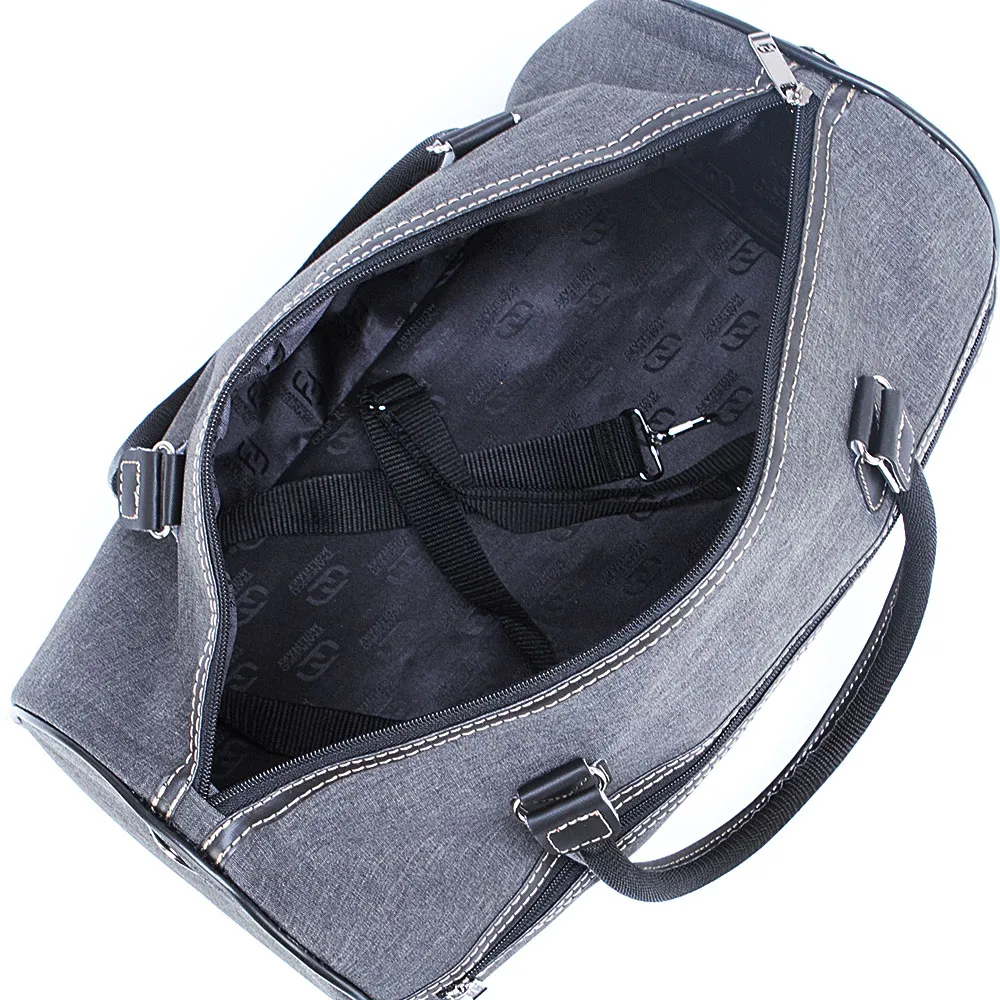 Дорожная сумка от торговой марки Francesco Molinary выполнена из плотной текстильной ткани с вставками из искусственной кожи в черном цвете с контрастной отстрочкой. Модель с двумя плотными ручками и съемным плечевым ремнем. Вместительное отделение на молнии. Внутри: фирменная подкладка. На лицевой стороне – карман на молнии. Дно сумки оснащено пластиковыми ножками для защиты от износа.