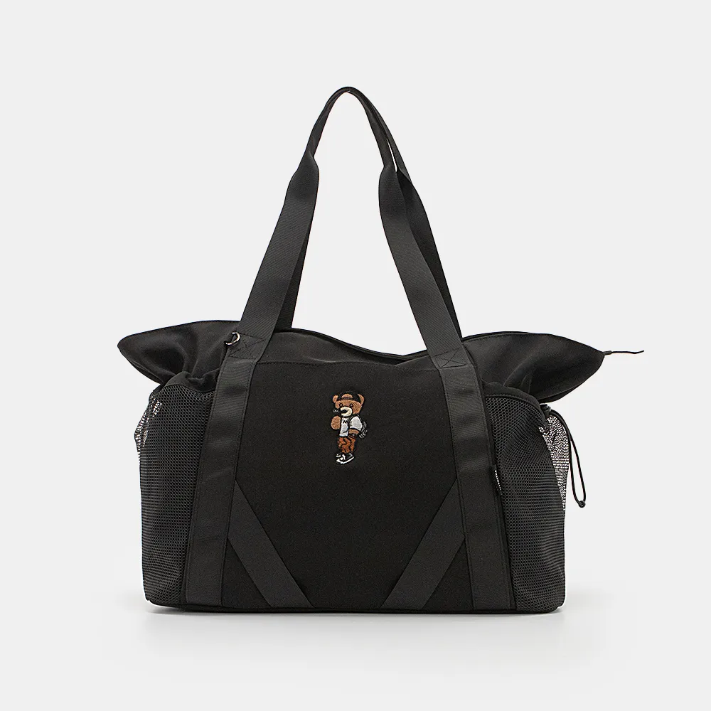 Дорожно-спортивная сумка от торговой марки Valigetti из практичного материала зеленого цвета. Лицевая сторона декорирована аппликацией в виде мишки. Вместительная модель с двумя удлиненными ручками. Отделение на молнии. Внутри: текстильная подкладка, карман на молнии, два накладных кармана. На лицевой стороне – накладной карман без застежки. По бокам – карман-сетка на резинке со стоппером. На задней стороне – лямка для фиксации на выдвижную ручку чемодана. Молодежная текстильная коллекция представлена моделями, выполненными из трех видов материалов: прочной ткани рип-стоп, блестящего и матового текстиля. Фурнитура повышенной прочности обеспечивает плавность движения замка и долговечность использования.